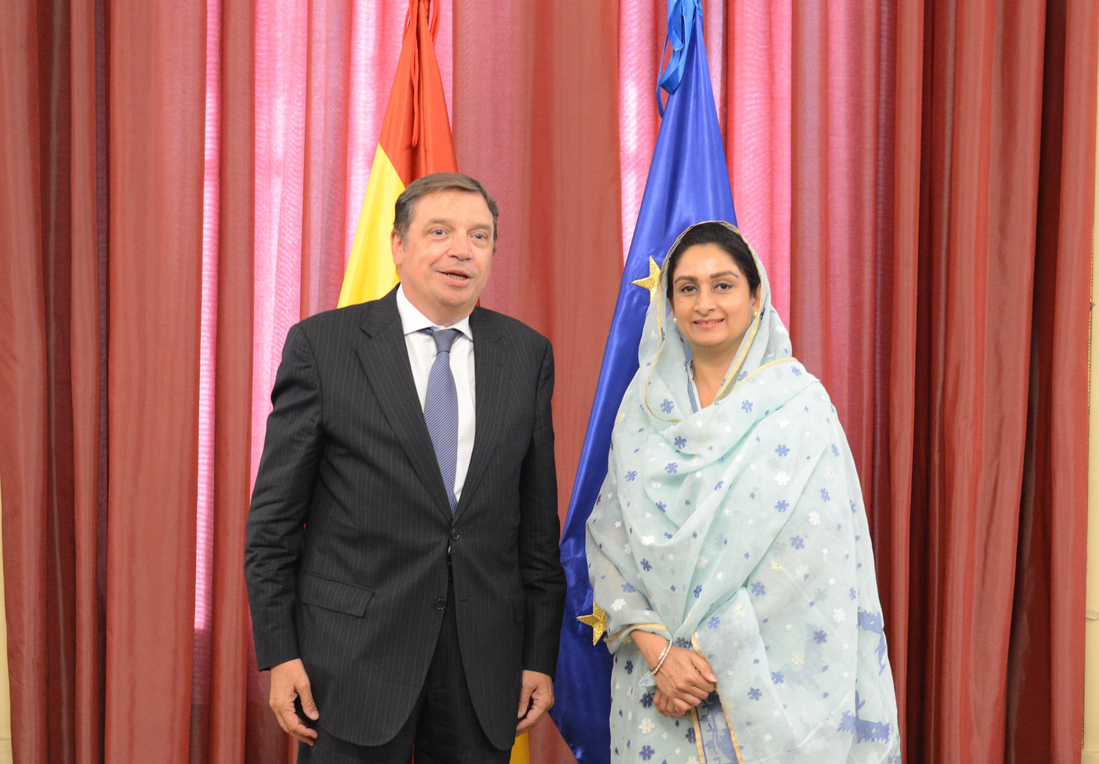 El ministro de Agricultura, Pesca y Alimentación, Luis Planas, se ha reunido hoy, en la sede del Ministerio, con la ministra de la Industria del Procesado de Alimentos de la India, Harsimrat Kaur Badal, con quien ha pasado revista a asuntos bilaterales en materia agroalimentaria.