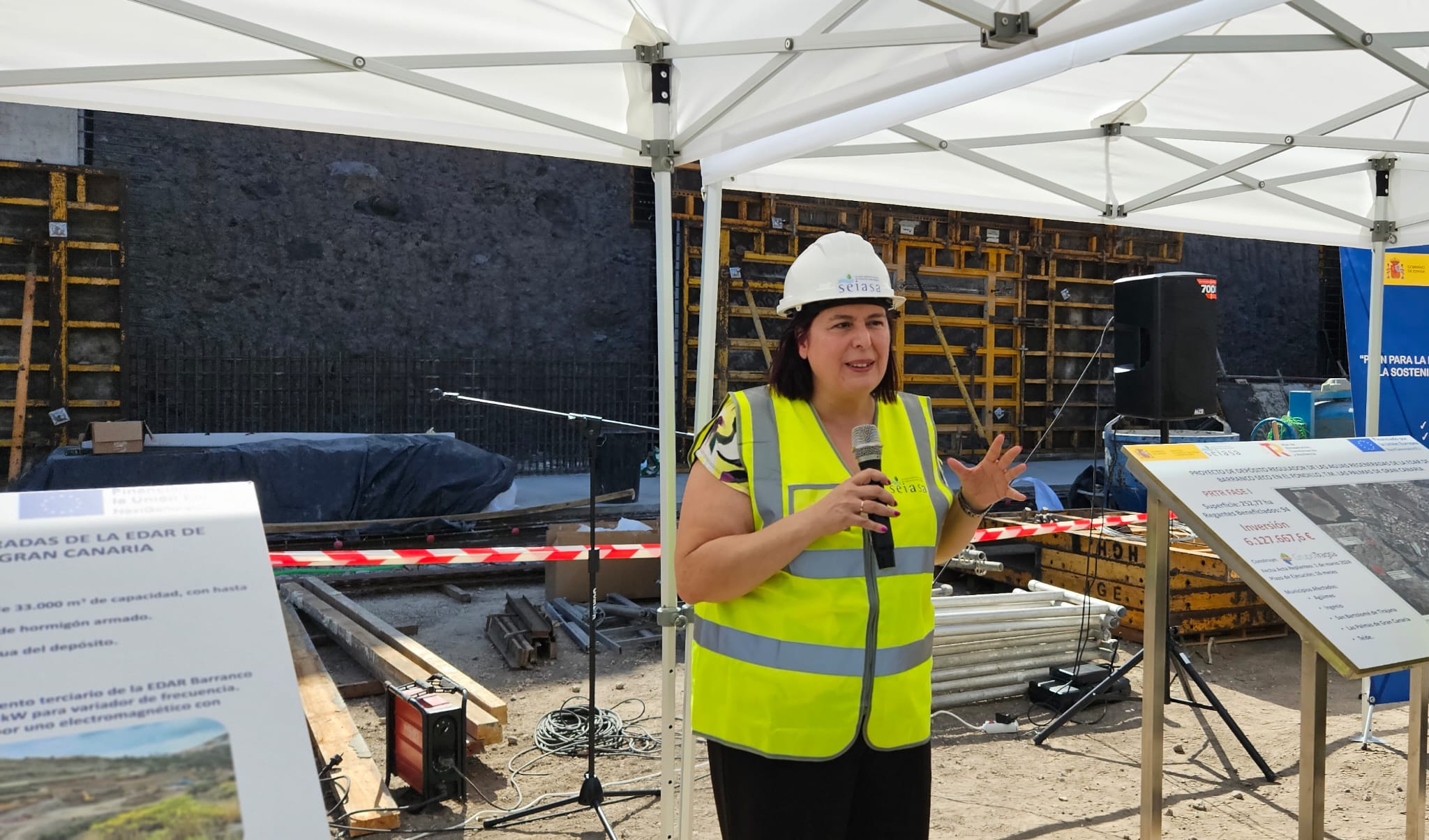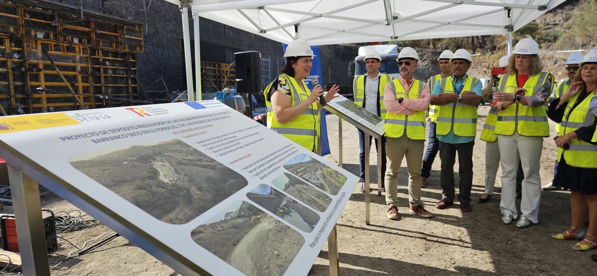 Tras la celebración del foro, la secretaria de Estado ha visitado una de estas obras, la del proyecto de depósito regulador de las aguas regeneradas del Barranco Seco en El Fondillo, en el término municipal de Las Palmas de Gran Canaria, que cuenta con una inversión de 6.127.667,69 euros. Con esta actuación, centrada en la mejora del aprovechamiento en el riego con las aguas regeneradas, se va a modernizar una superficie de 252,77 hectáreas, y se van a beneficiar 94 regantes.