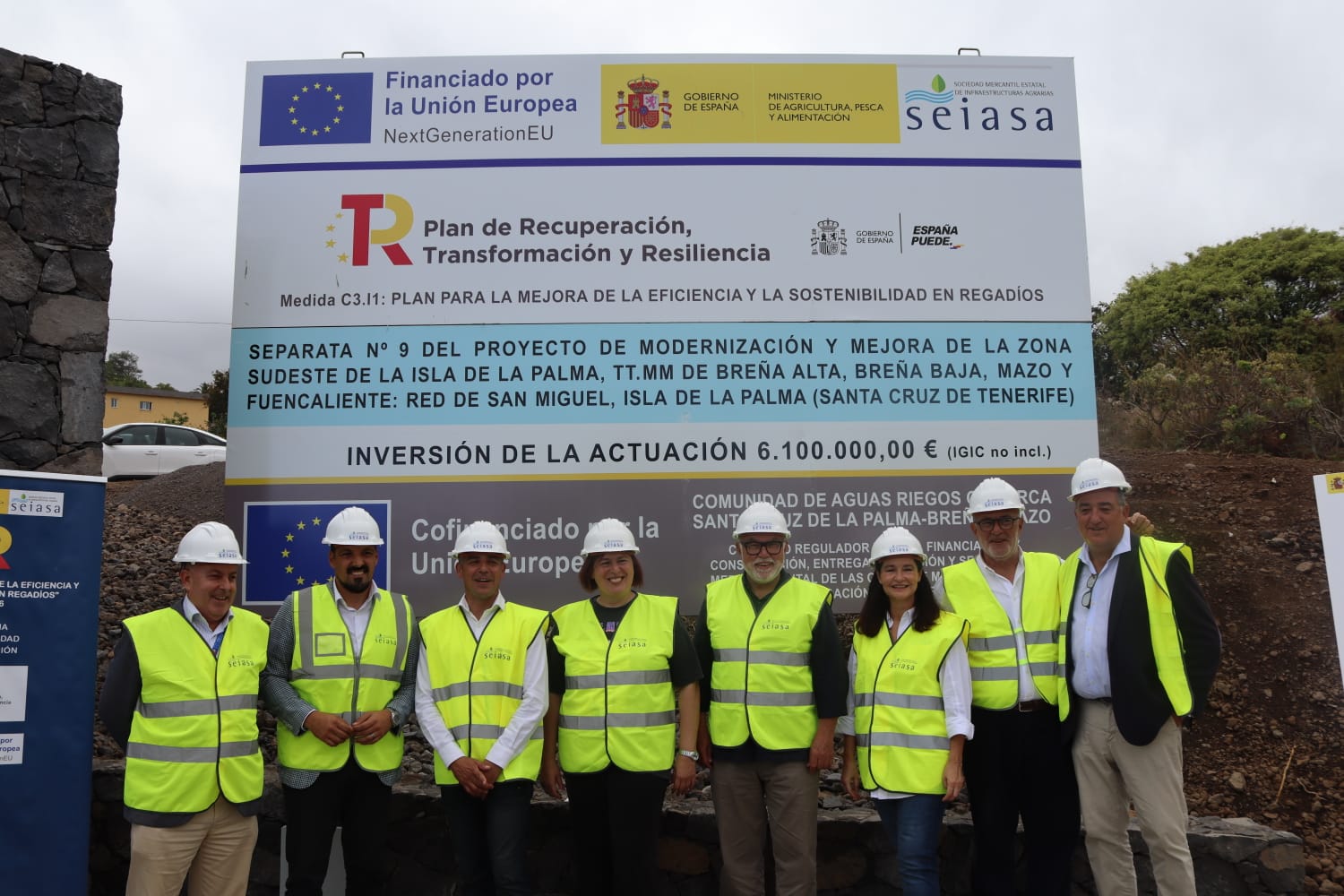 El otro proyecto en marcha visitado por Begoña García, la modernización de la Comunidad de Riegos Comarca Santa Cruz, beneficiará a 456 regantes y mejorará la gestión del riego de San Miguel mediante la construcción de una estación de filtrado y una nueva red a presión con telecontrol. El presupuesto es de 6,10 millones de euros (IGIC no incluido) para la modernización de 250 hectáreas de plataneras que cultivan 456 agricultores en los municipios de Breña Alta, Breña Baja, Mazo y Fuencaliente.