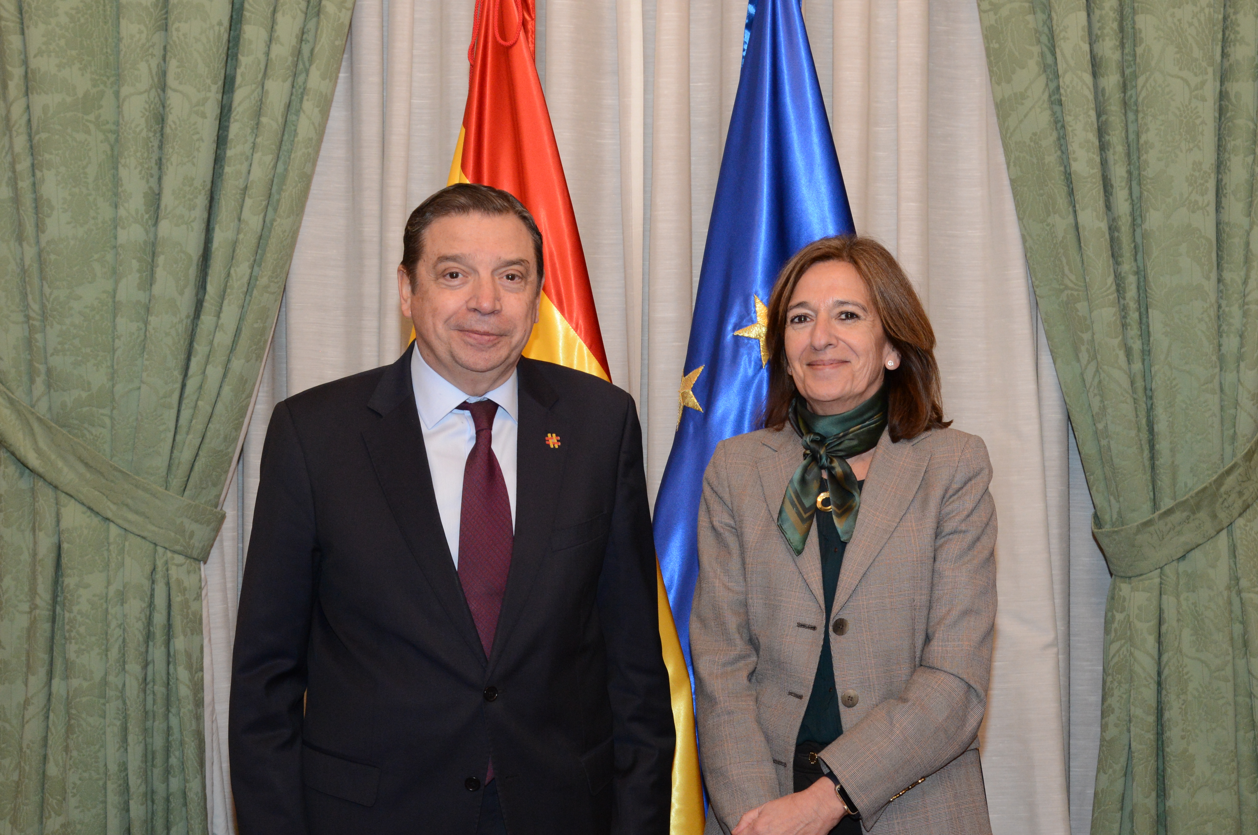 El ministro de Agricultura, Pesca y Alimentación, Luis Planas, se ha reunido hoy en la sede del ministerio con la presidenta de la Unión Española de Entidades Aseguradoras y Reaseguradoras (Unespa), Mirenchu del Valle, con quien ha abordado los retos actuales a los que se enfrenta el seguro agrario.