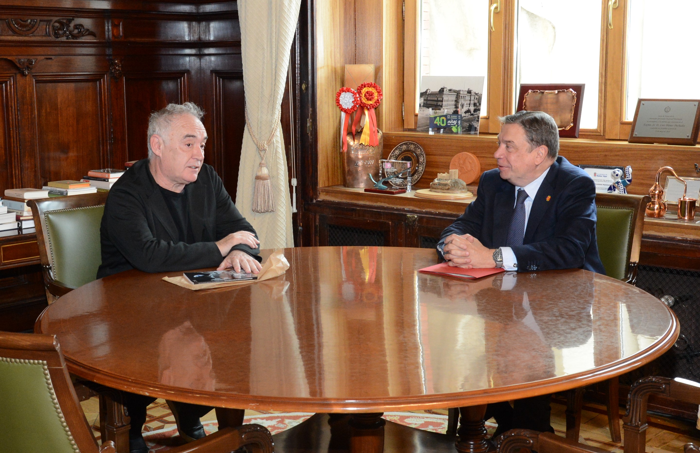 El ministro de Agricultura, Pesca y Alimentación, Luis Planas, se ha reunido hoy con el gastrónomo Ferrán Adrià con objeto de analizar futuros proyectos para fortalecer la imagen de la gastronomía española a nivel mundial.