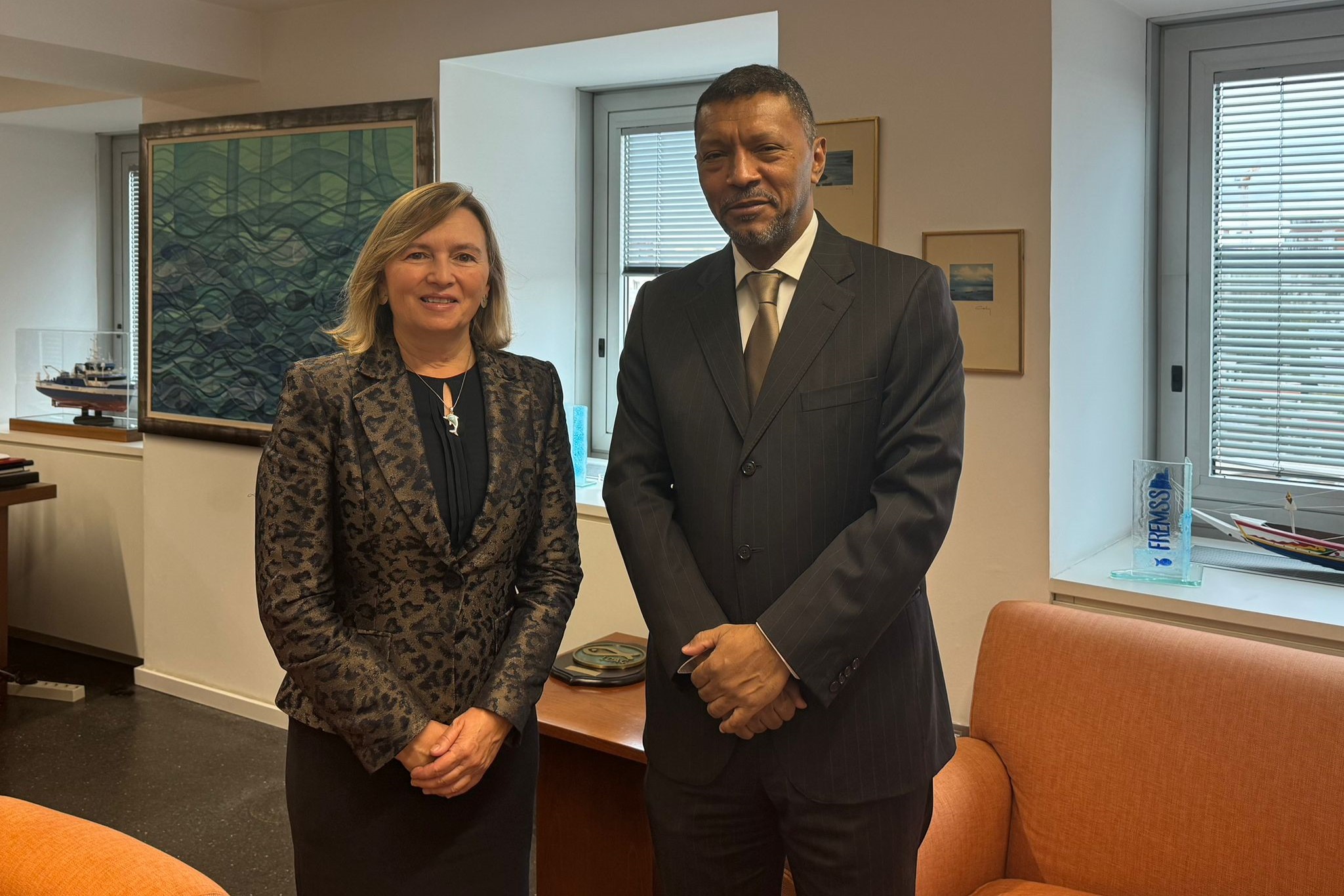 La secretaria general de Pesca, Isabel Artime, se ha reunido hoy con el embajador de Cabo Verde, Eduardo Jorge Silva, para analizar diversos temas de interés en materia pesquera y acuícola de ambos países, reforzar la relación institucional y explorar posibles vías de cooperación.