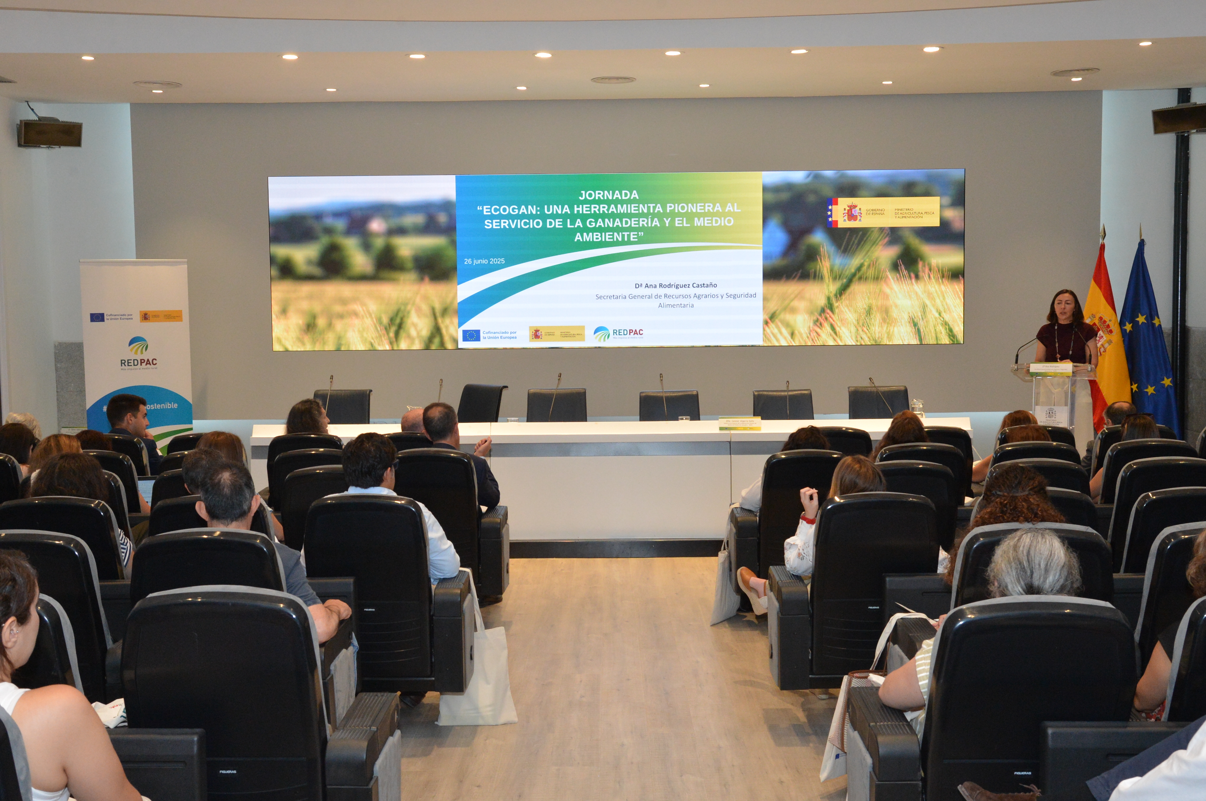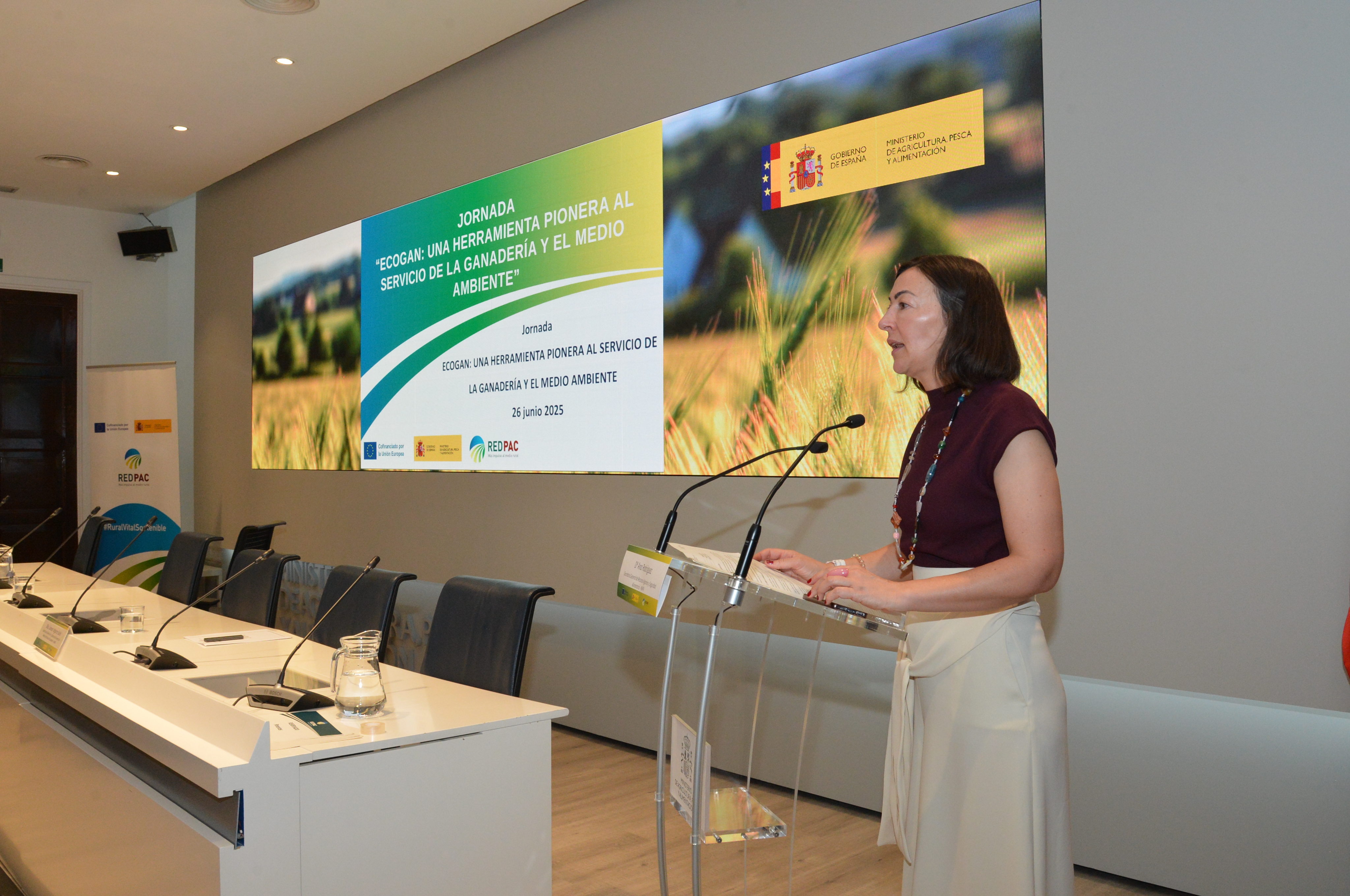 Ana Rodríguez ha inaugurado hoy una jornada dedicada a ECOGAN, la herramienta informática desarrollada por el Ministerio de Agricultura, Pesca y Alimentación para la mejora del cálculo de emisiones en el sector ganadero y el registro de las Mejoras Técnicas Disponibles, que permite avanzar en la precisión y trazabilidad de los datos relativos a emisiones de gases contaminantes y gases de efecto invernadero. Con ello se contribuye a conseguir una ganadería más sostenible y alineada con los compromisos medioambientales nacionales, comunitarios e internacionales.