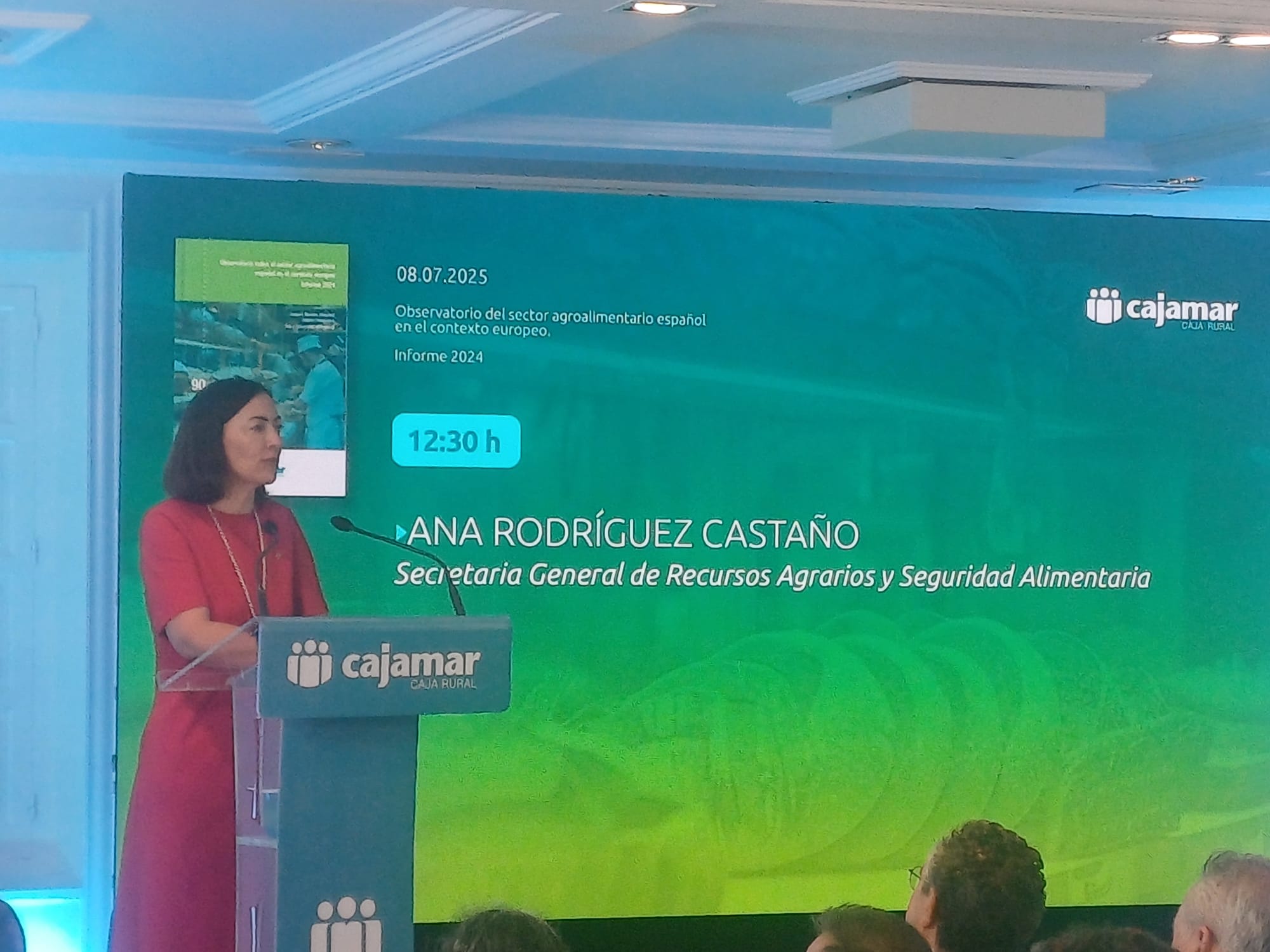 La secretaria general de Recursos Agrarios y Seguridad Alimentaria, Ana Rodríguez, ha participado hoy en la presentación del informe 2024 del Observatorio del Sector Agroalimentario de Cajamar, que recoge los indicadores más relevantes y realiza un análisis profundo de los aspectos clave que determinan el funcionamiento y la evolución del sector agroalimentario en España.