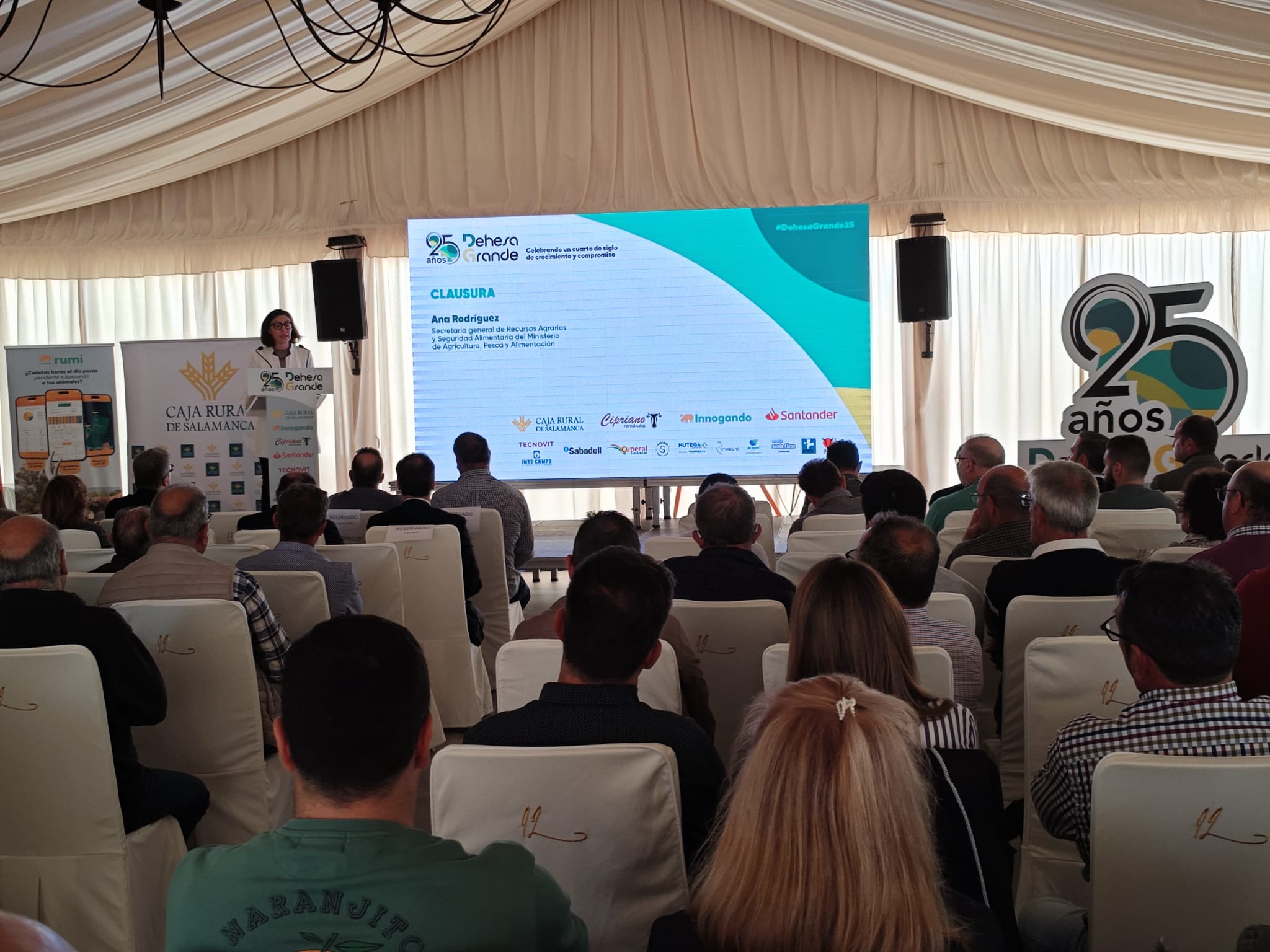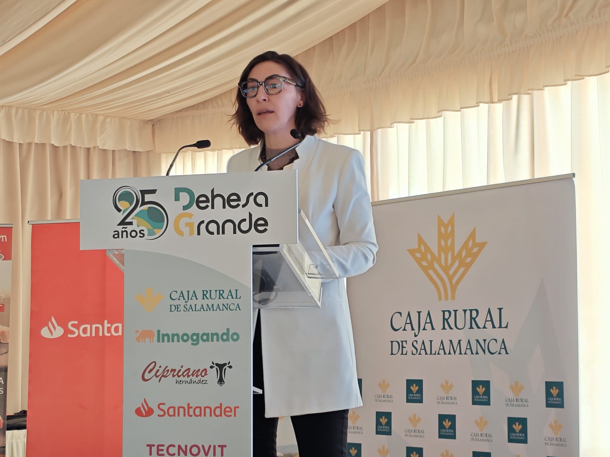 La secretaria general de Recursos Agrarios y Seguridad Alimentaria, Ana Rodríguez, ha participado en la clausura de la jornada de celebración de los 25 años de la cooperativa Dehesa Grande, ubicada en Villaseco de los Gamitos, Salamanca, y especializada en vacuno de carne.