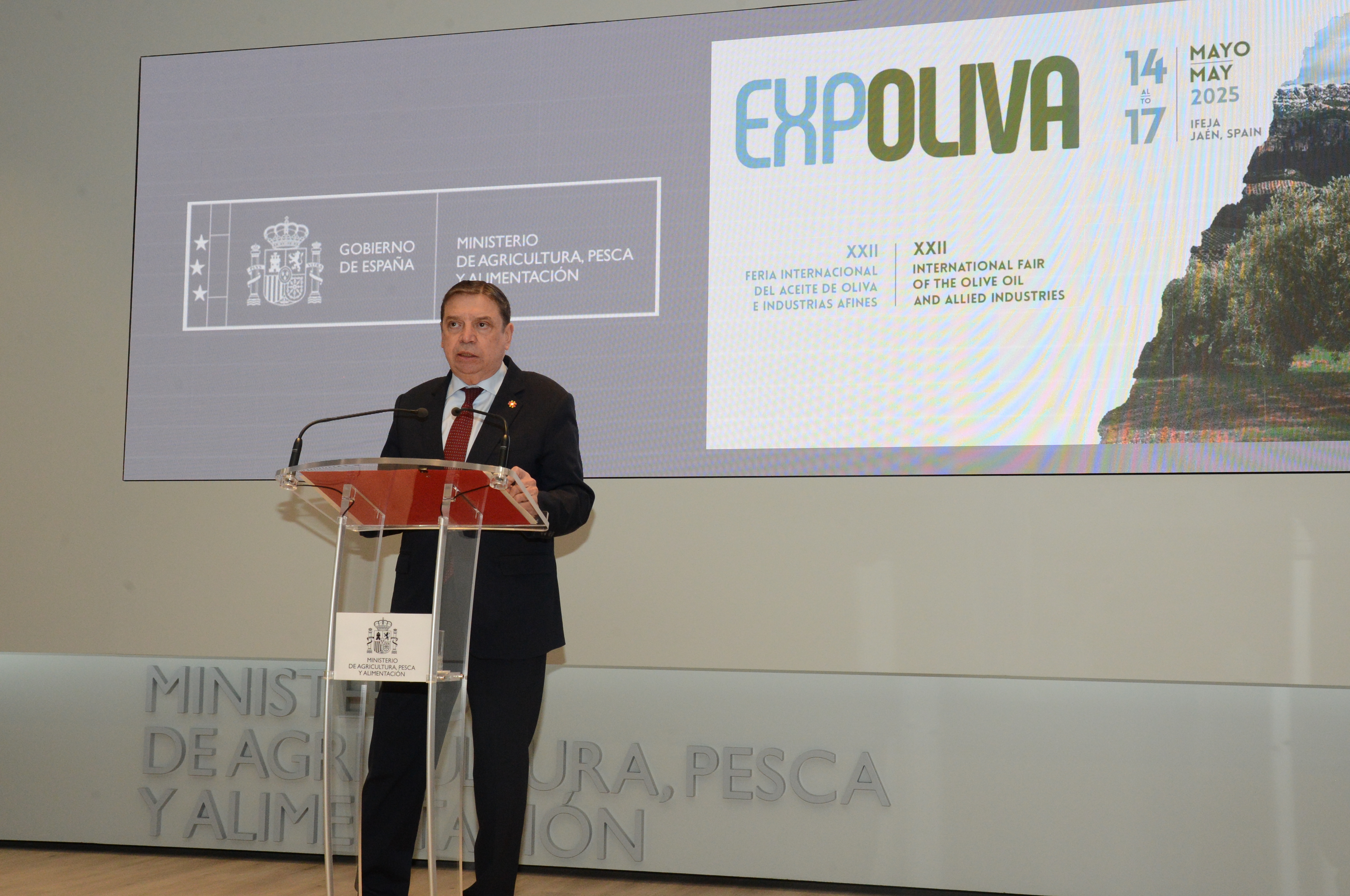 Luis Planas ha participado hoy en la presentación de la XXII Feria Internacional del Aceite de Oliva e Industrias Afines, Expoliva 2025, que se celebrará en el Palacio de Ferias y Congresos de Jaén del 14 al 17 de mayo, junto al presidente de la Diputación Provincial de Jaén, Francisco Reyes. Un certamen que, según Planas, se ha consolidado como punto de encuentro clave de la comercialización a nivel mundial, “un referente para el futuro del sector desde el punto de vista también de la investigación científica y que convierte a Jaén, una vez más, en la capital mundial del aceite”.