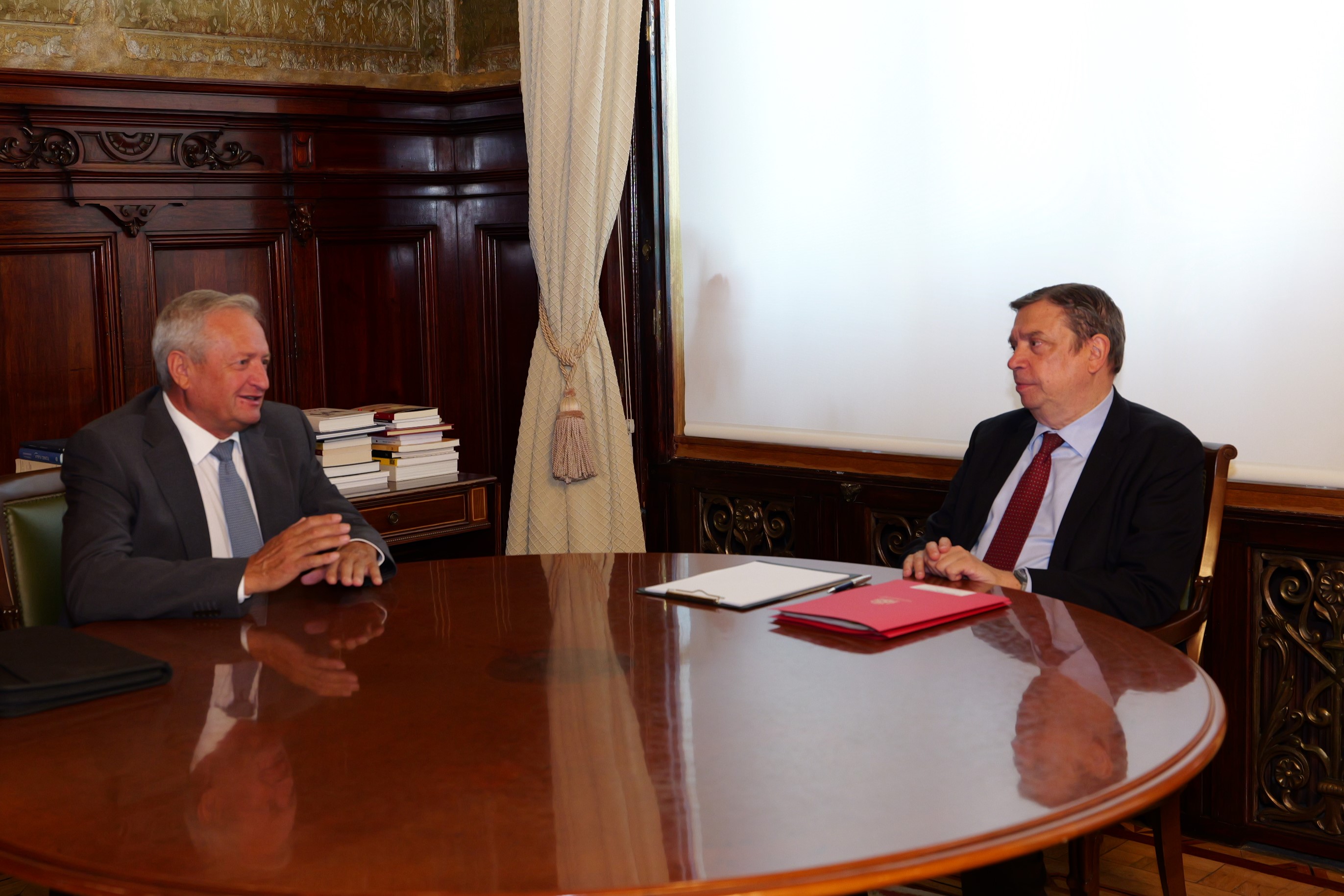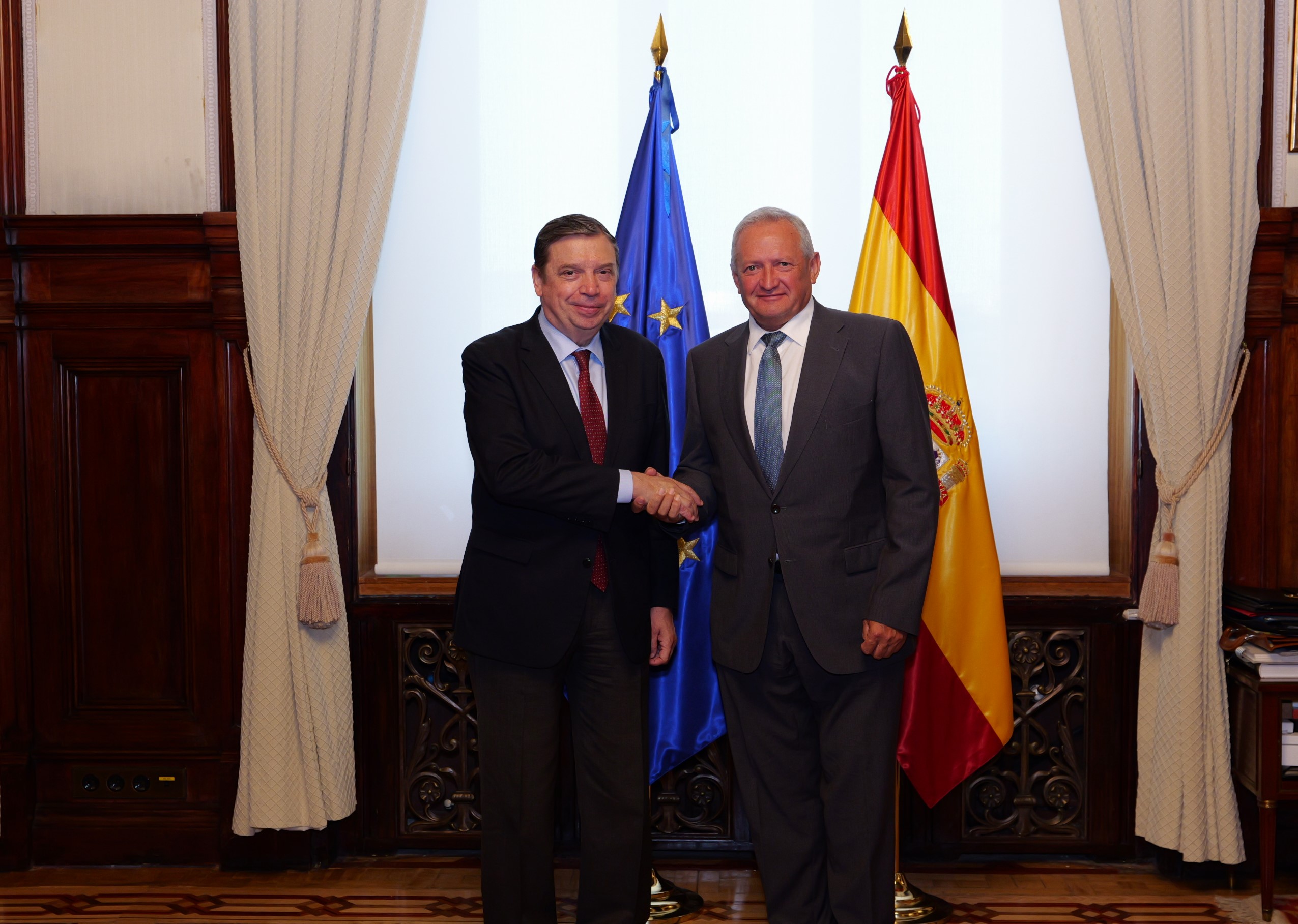 El ministro de Agricultura, Pesca y Alimentación, Luis Planas, se ha reunido hoy con el presidente de Cooperativas Agro-alimentarias de España, Ángel Villafranca, encuentro que refleja el compromiso de ambas partes por fortalecer la cooperación y promover el desarrollo del sector.