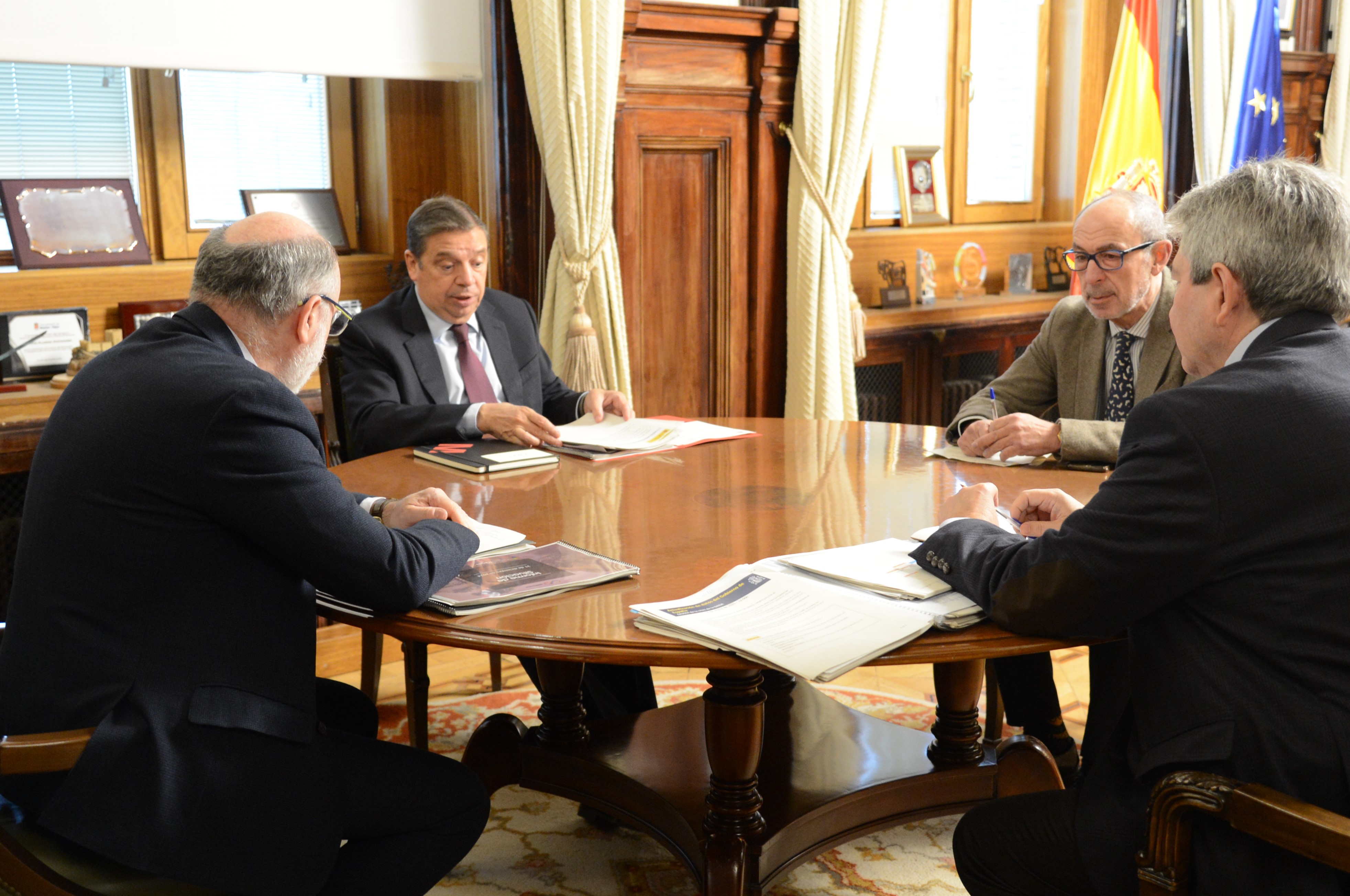 El ministro de Agricultura, Pesca y Alimentación, Luis Planas, se ha reunido con el presidente de la Empresa de Transformación Agraria (Tragsa), Jesús Casas, con quien ha analizado las medidas del ministerio para contribuir a la recuperación de las explotaciones de los agricultores afectados por la dana.