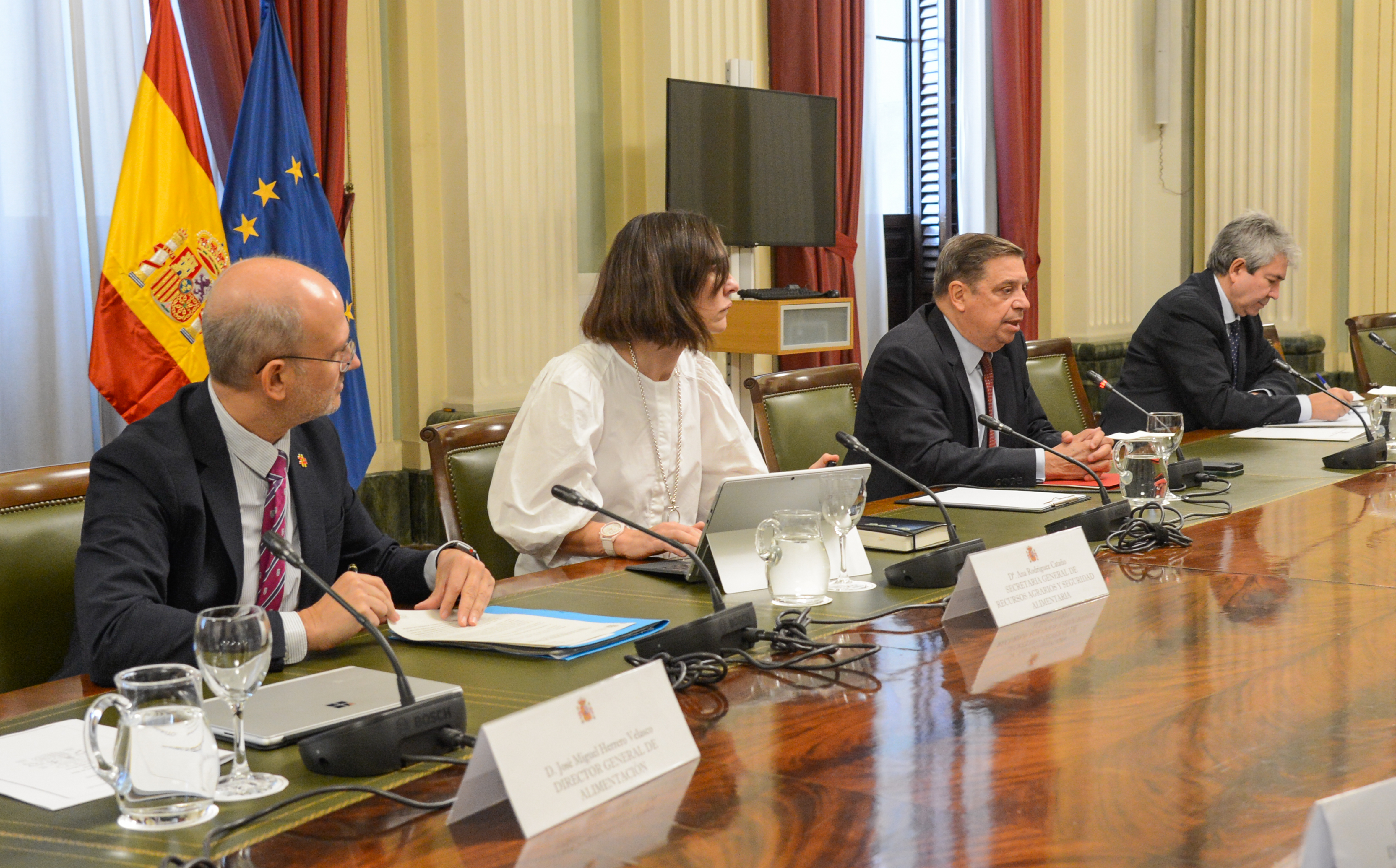 El ministro de Agricultura, Pesca y Alimentación, Luis Planas, se ha reunido hoy con representantes de las patronales de la distribución alimentaria, con las que ha intercambiado opiniones sobre la Estrategia Nacional de Alimentación (ENA) y a las que ha animado a enviar sus aportaciones para su elaboración.