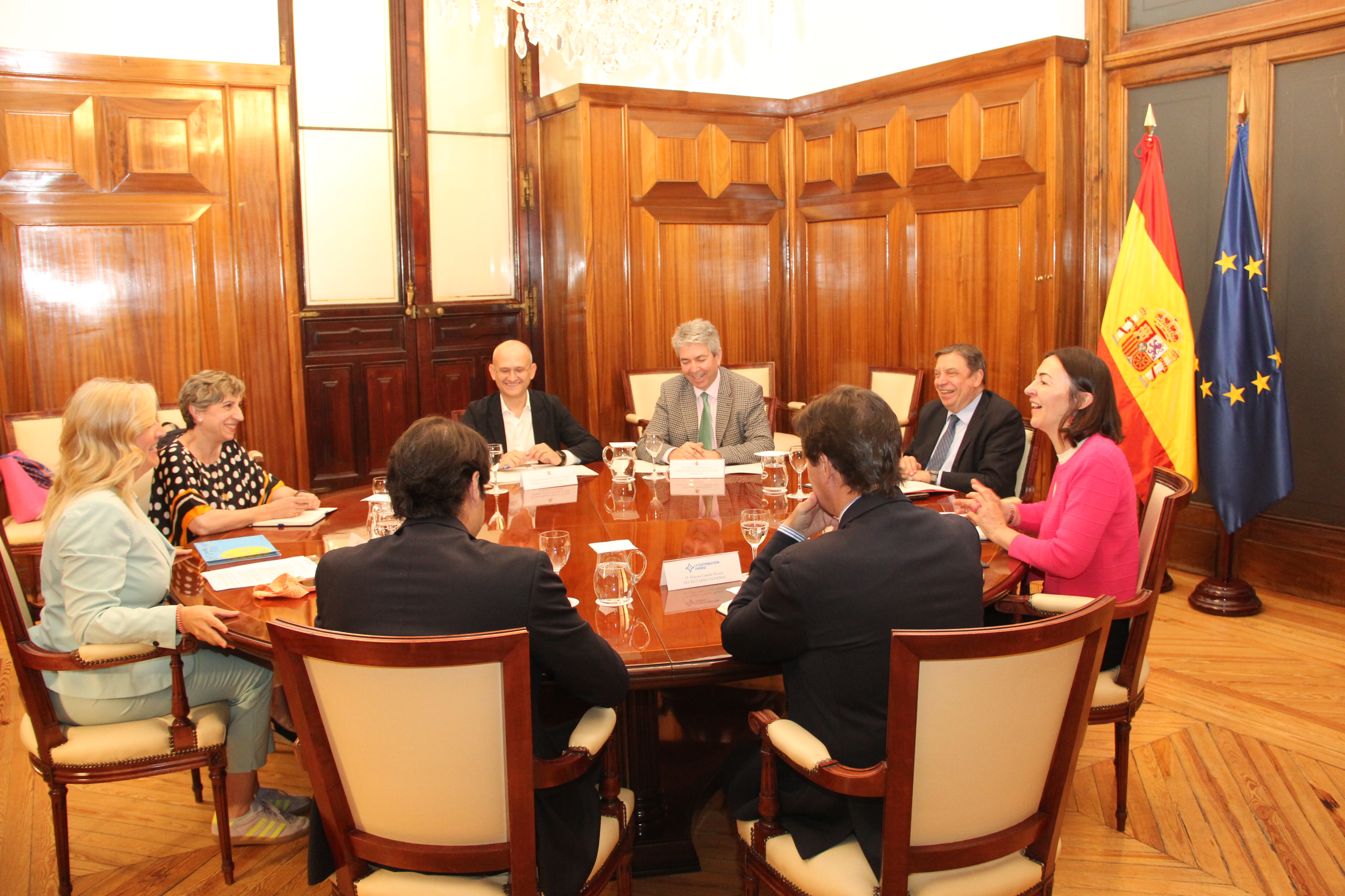 El ministro de Agricultura, Pesca y Alimentación, Luis Planas, se ha reunido hoy con representantes de la Asociación Nacional de Grandes Empresas de Distribución (Anged), que le han presentado la nueva estructura resultante de su integración con la Asociación de Cadenas Españolas de Supermercados (ACES).
