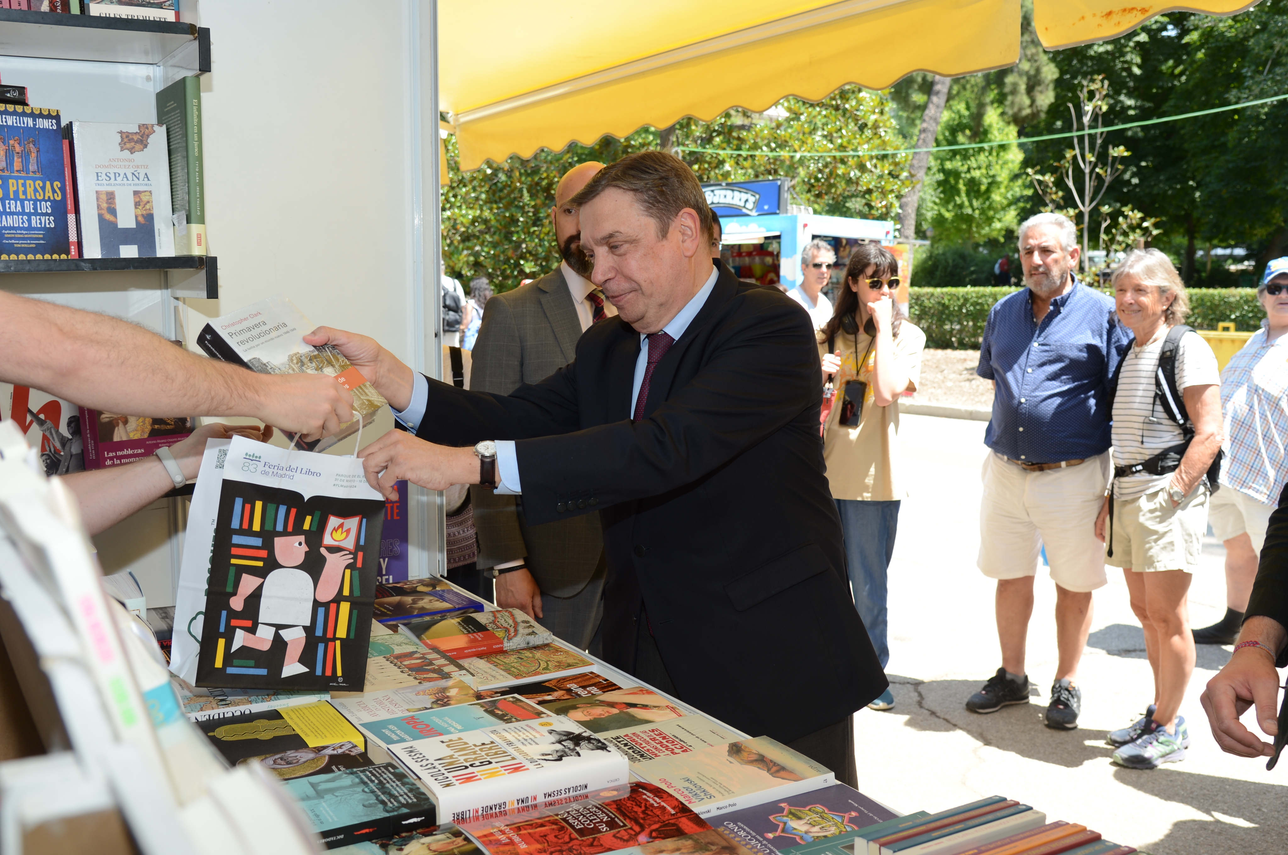 El ministro de Agricultura, Pesca y Alimentación, Luis Planas, ha visitado hoy la 83ª edición de la Feria del libro de Madrid, que se celebra en los Jardines del Buen Retiro del 31 de mayo al 16 de junio. El ministerio ha instalado un estand para dar a conocer a los ciudadanos una amplia variedad de libros sobre agricultura, pesca, alimentación y desarrollo rural.