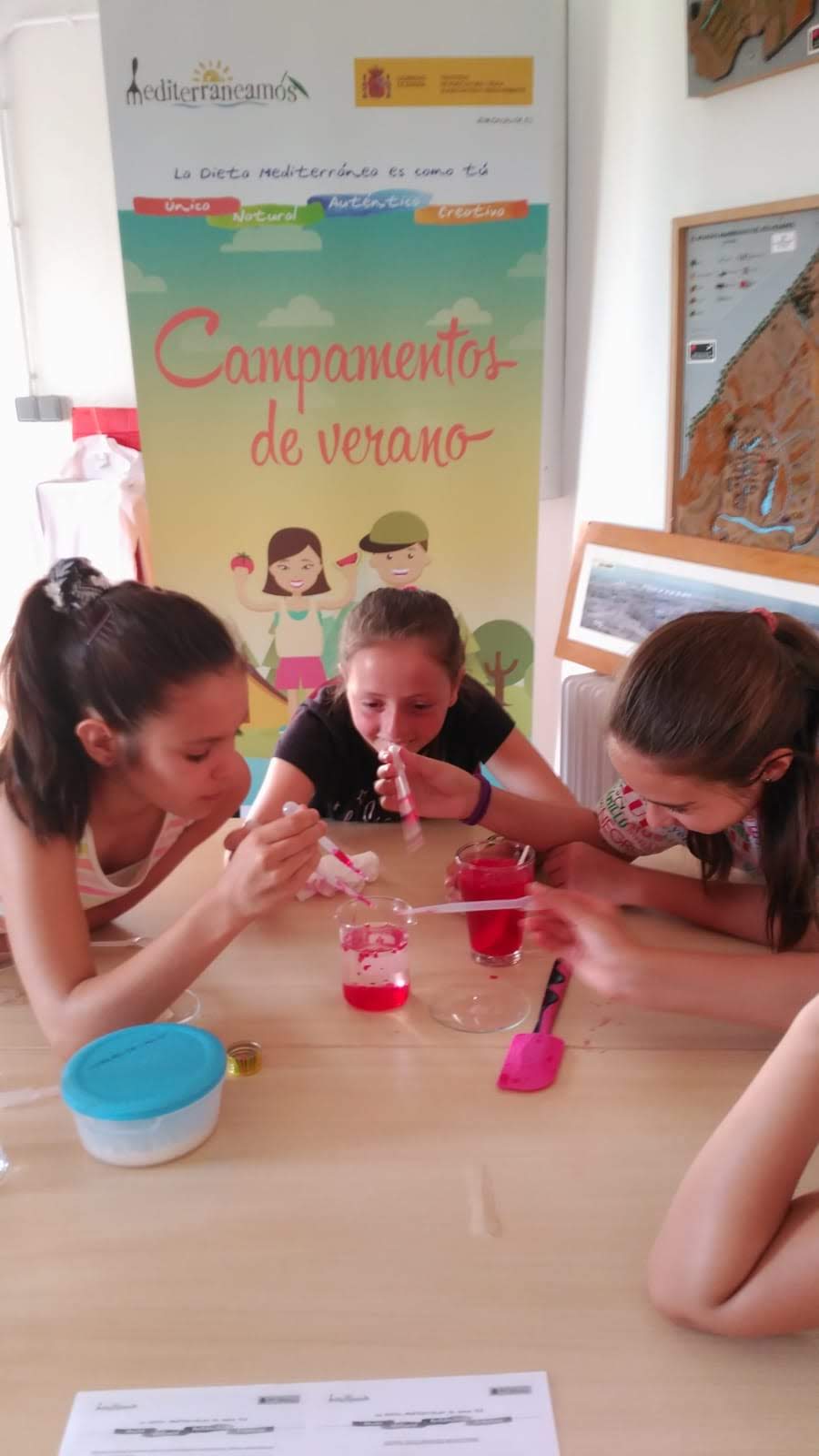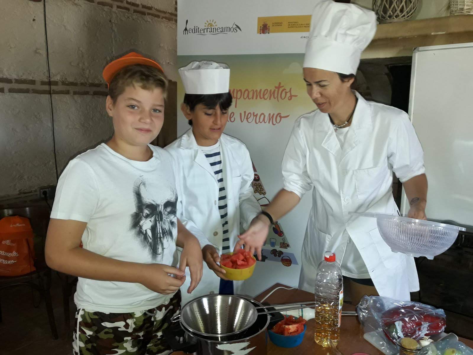 De la mano de cocineros, nutricionistas y monitores de tiempo libre bilingües, han aprendido a preparar y han y elaborado sus propias recetas, como ensaladas, gazpachos de sandía o sopa de melón, crepes y brioches de pan mediterráneo. Además en los talleres, también han podido aprender otras curiosidades como crear su propio chocolate elástico, pasta mágica o incluso preparar esferificaciones y otras técnicas usadas en alta cocina.
