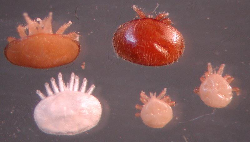 Ácaro Varroa destructor (clase: arácnidos, orden: ácaro)