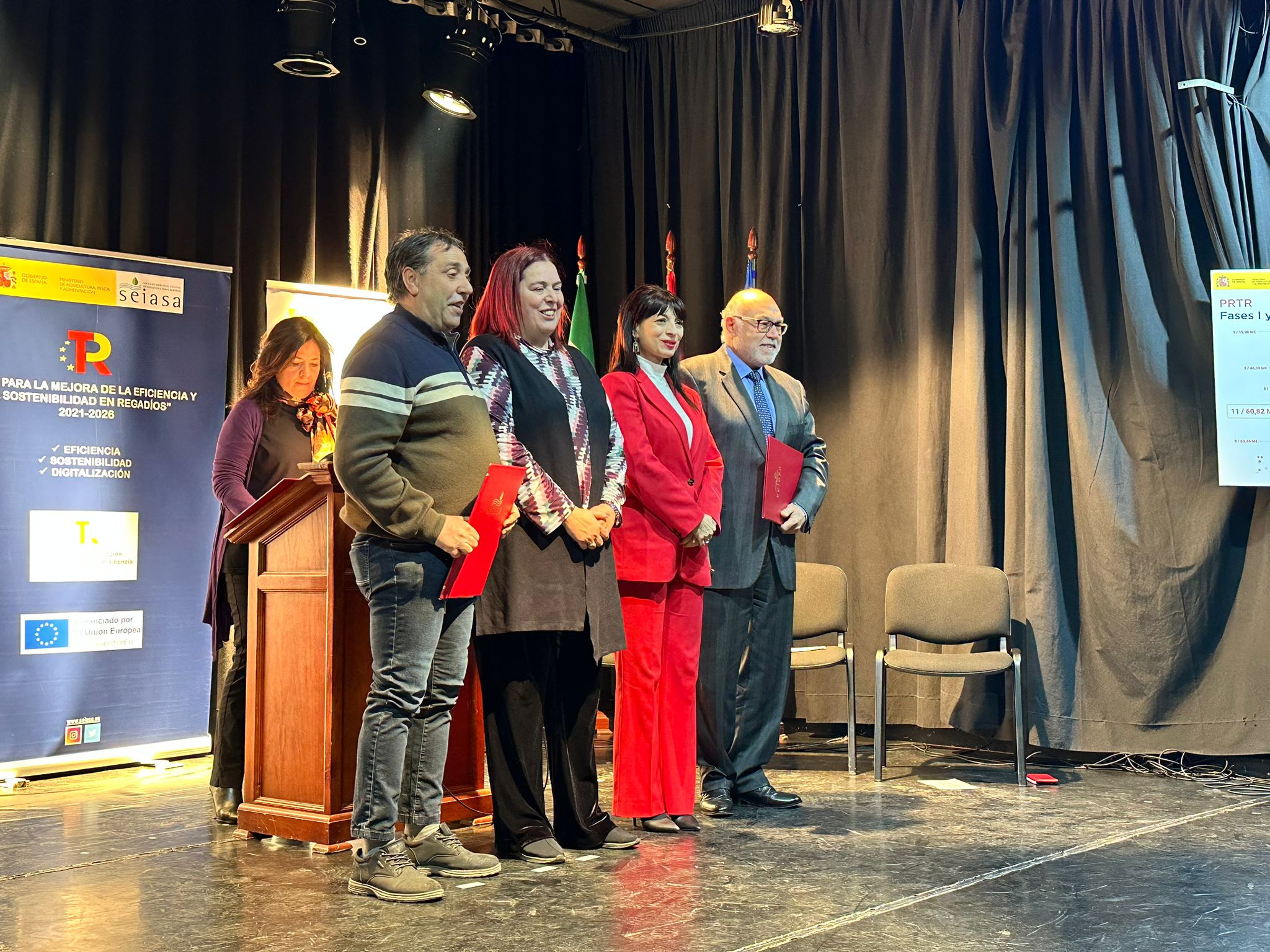 La directora general de Desarrollo Rural, Innovación y Formación Agroalimentaria, Isabel Bombal, ha participado hoy, en Piornal (Cáceres), en el acto de suscripción de seis convenios, firmados entre el presidente de SEIASA, Francisco Rodríguez Mulero, y los representantes de las comunidades de regantes de Piornal, Valdastillas, Navaconcejo, Tornavacas, Barrado y Jerte. Al acto han asistido el subdelegado del Gobierno en Cáceres, José Antonio García Muñoz, y la consejera de Medio Ambiente y Rural, Políticas Agrarias y Territorio de Extremadura, Begoña García Bernal, entre otras autoridades.
