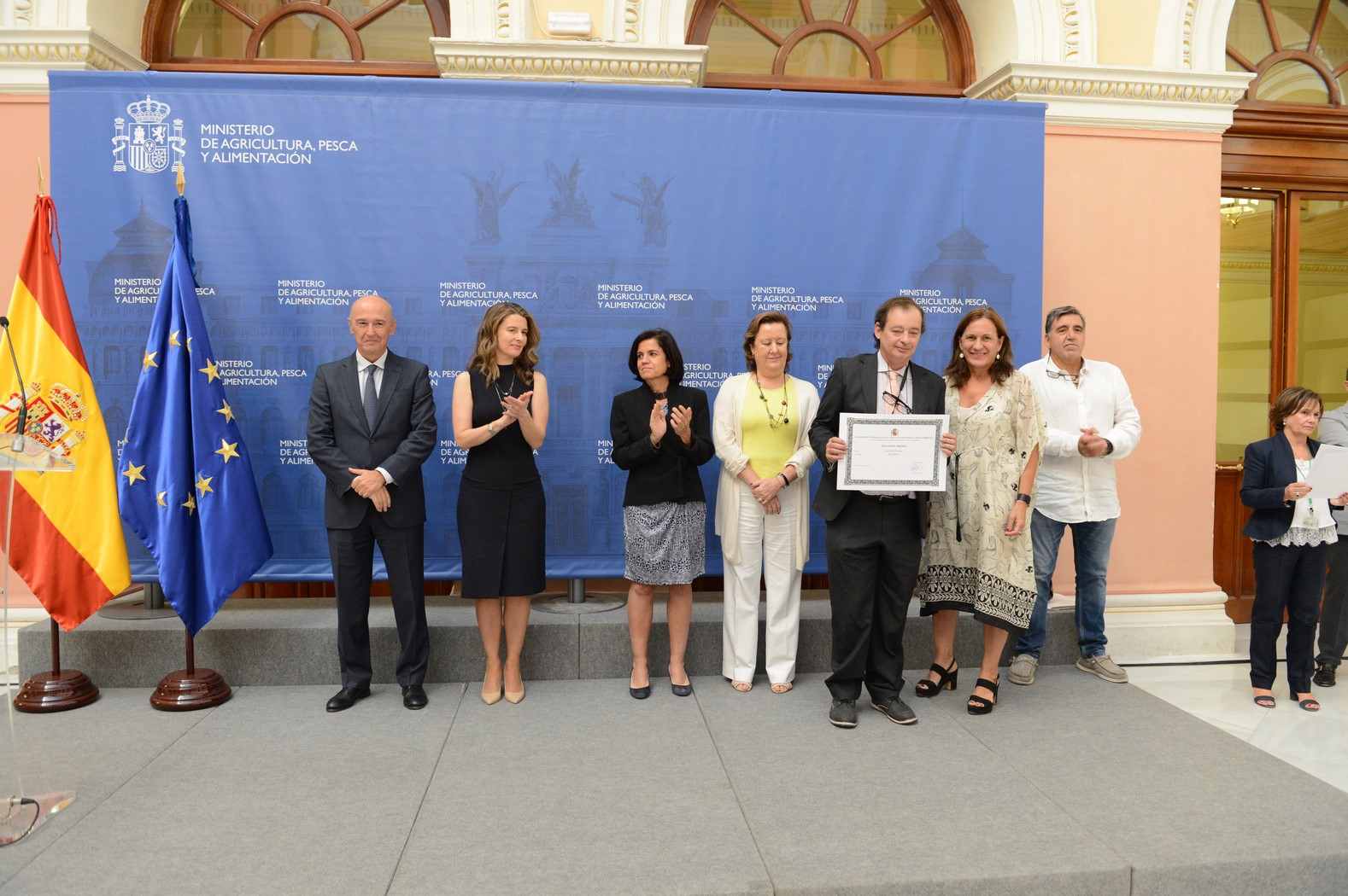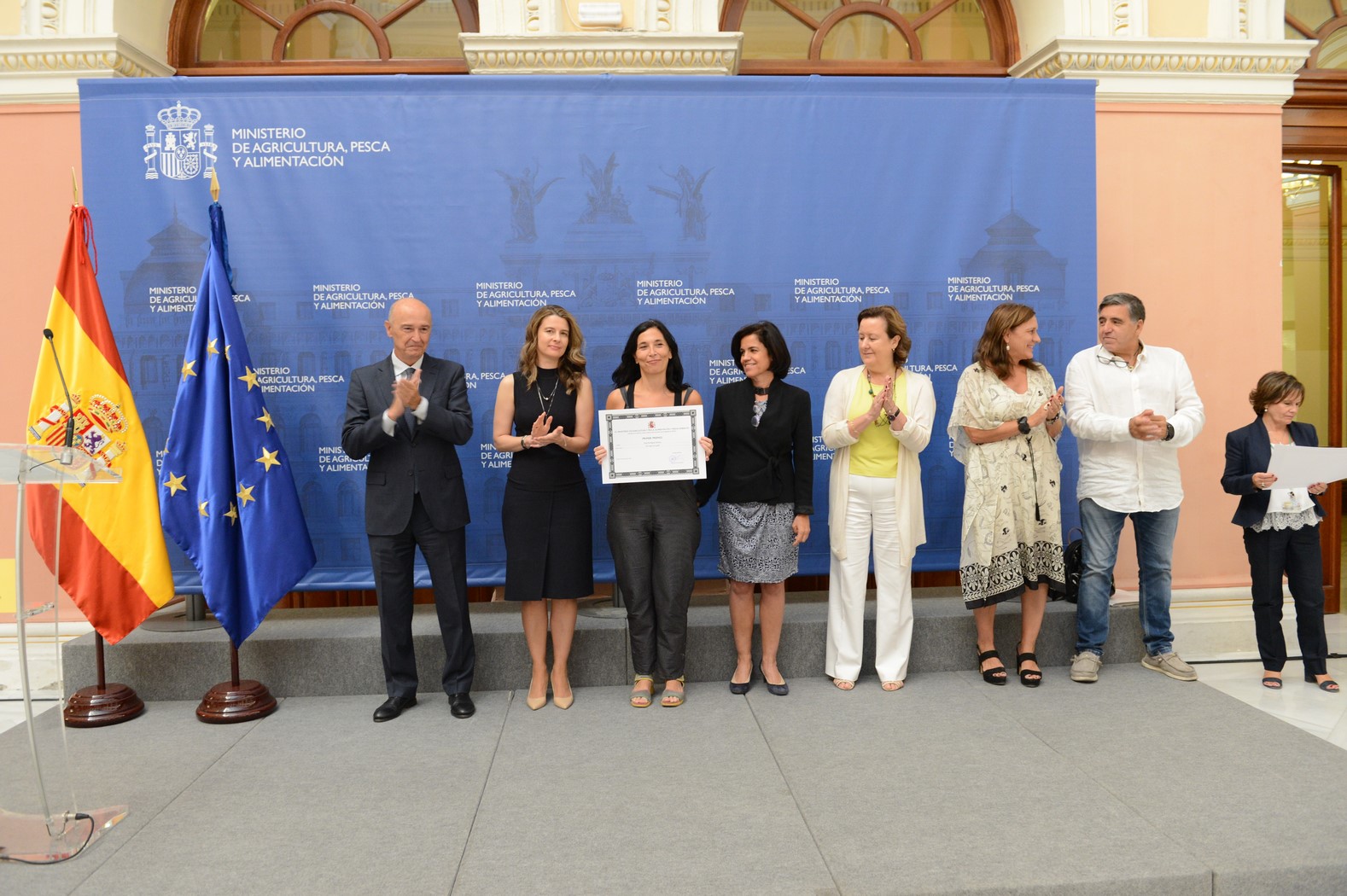 La subsecretaria de Agricultura, Pesca y Alimentación, María Dolores Ocaña, ha presidido hoy el acto de entrega de los premios de la trigésima edición del Certamen de Cerámica, vigésimo novena de Pintura y décimo novena de Fotografía del Ministerio de Agricultura, Pesca y Alimentación. Los galardonados han sido los siguientes: Modalidad de cerámica Primer premio Autor: Eva Ramón Título: Anémona Segundo premio Autor: Fernando Conejo Título: Desertificación y deshielo Modalidad de pintura Primer premio Autor: José Luis Romero Título: Pinares de Doñana Segundo premio Autor: Julián Maroto Título: Mariscadoras Modalidad de fotografía Primer premio Autor: Rosa Rodríguez Sánchez Título: Un mapa en la piel Segundo premio Autor: Isabel Morán Título: La Ola