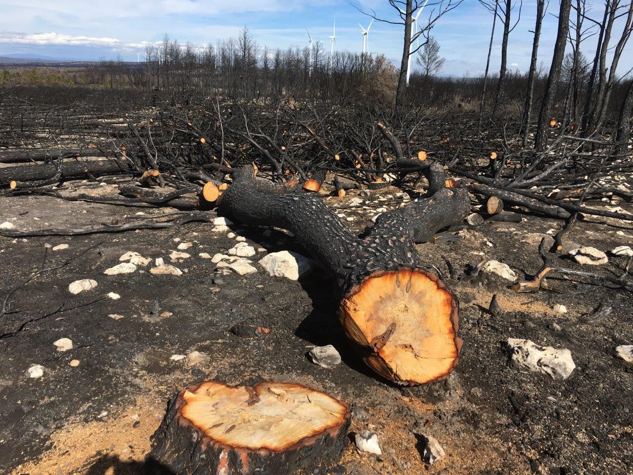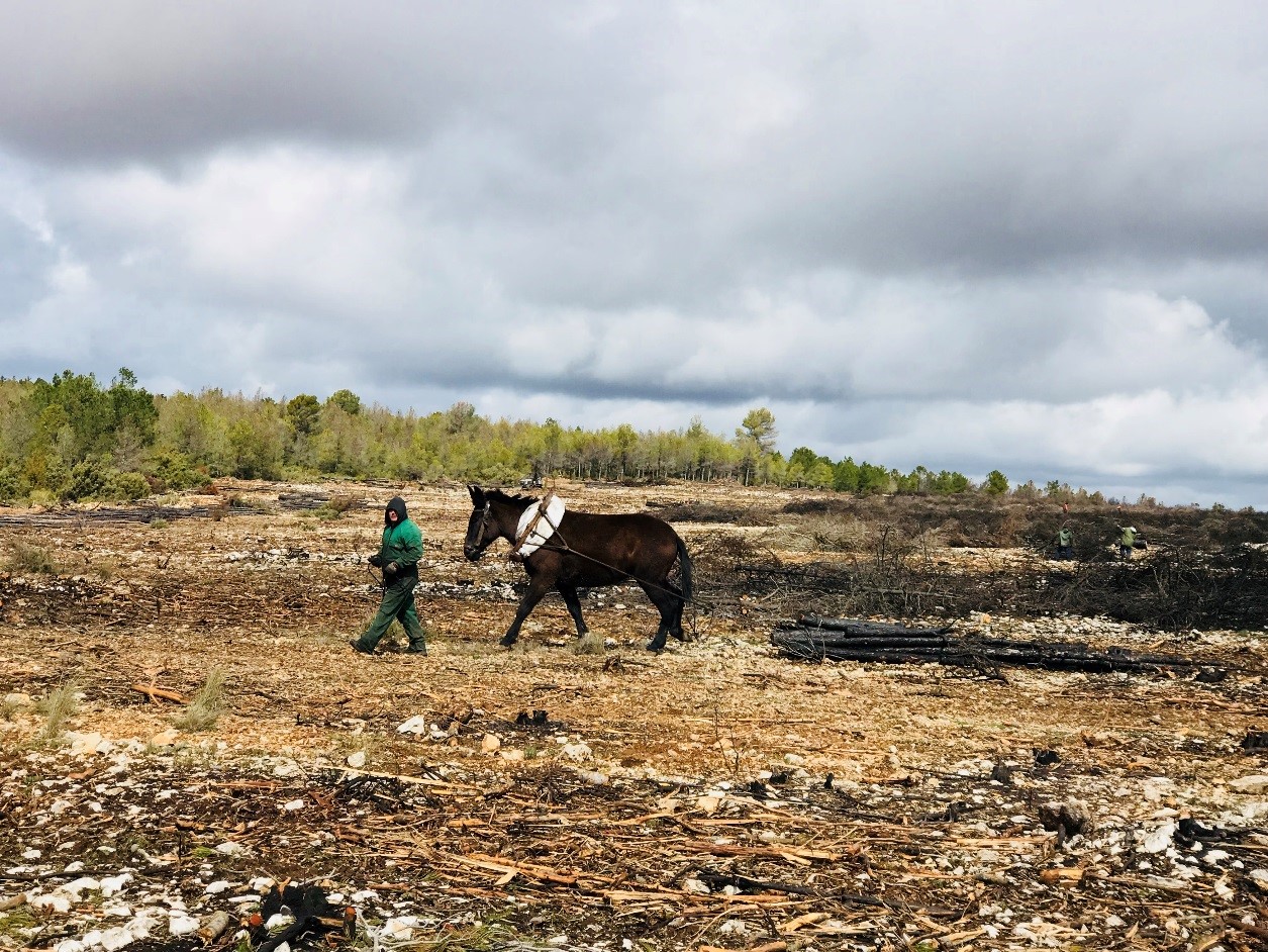 Entre las principales actuaciones que se han ejecutado se encuentra la corta de árboles quemados; el tronzado, recogida y apilado de los restos de corta; y la eliminación de los restos de corta con desbrozadora.
