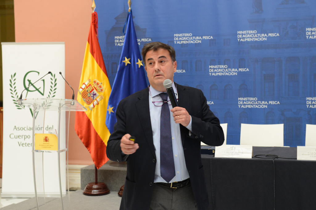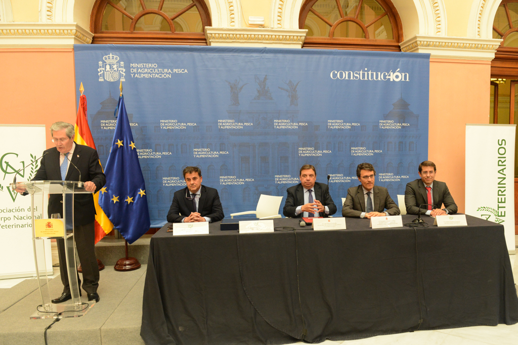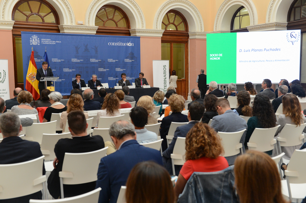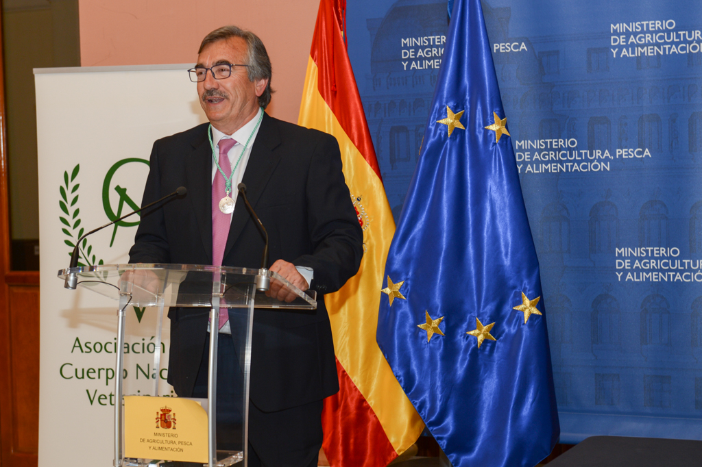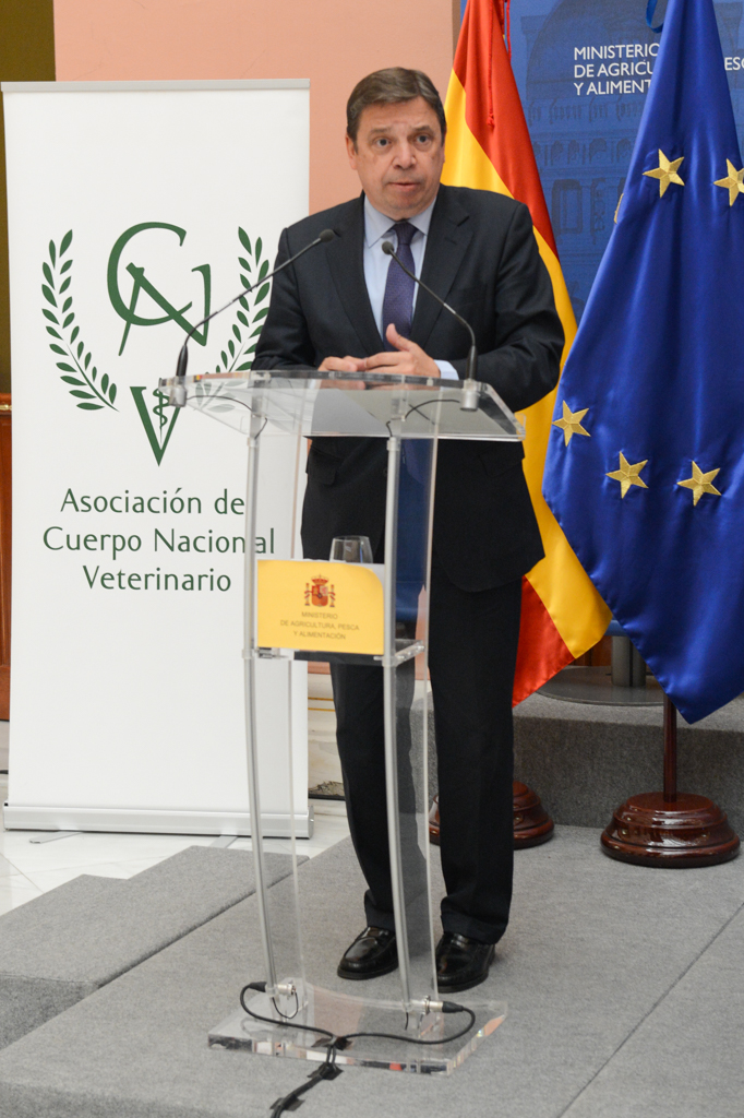 El ministro de Agricultura, Pesca y Alimentación en funciones, Luis Planas, ha participado hoy en la clausura de la 46ª asamblea ordinaria de la Asociación del Cuerpo Nacional Veterinario, que se ha celebrado en la sede del Ministerio, en la que se han entregado diferentes distinciones a los veterinarios que se han distinguido en sus funciones.