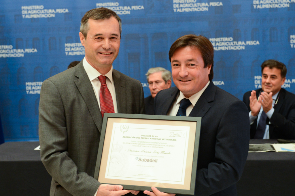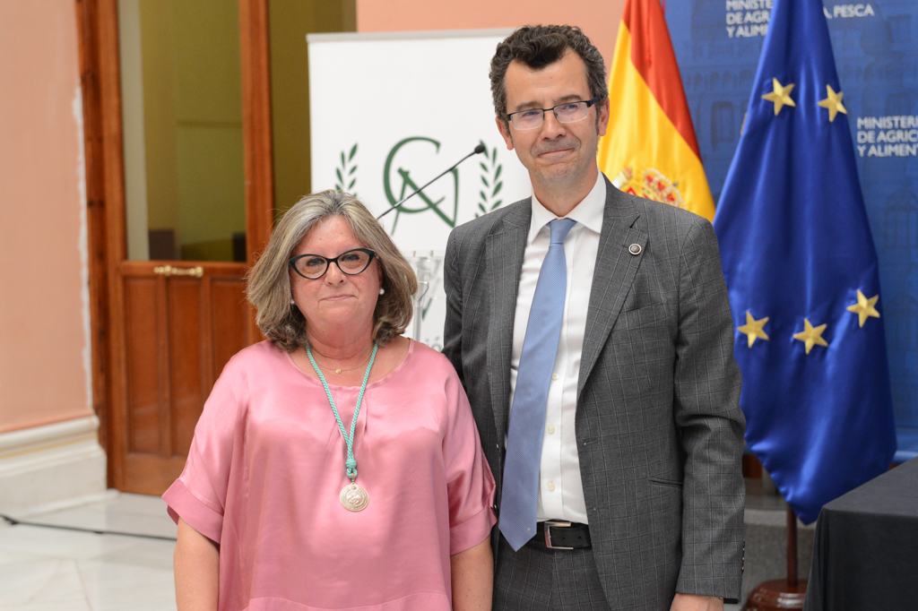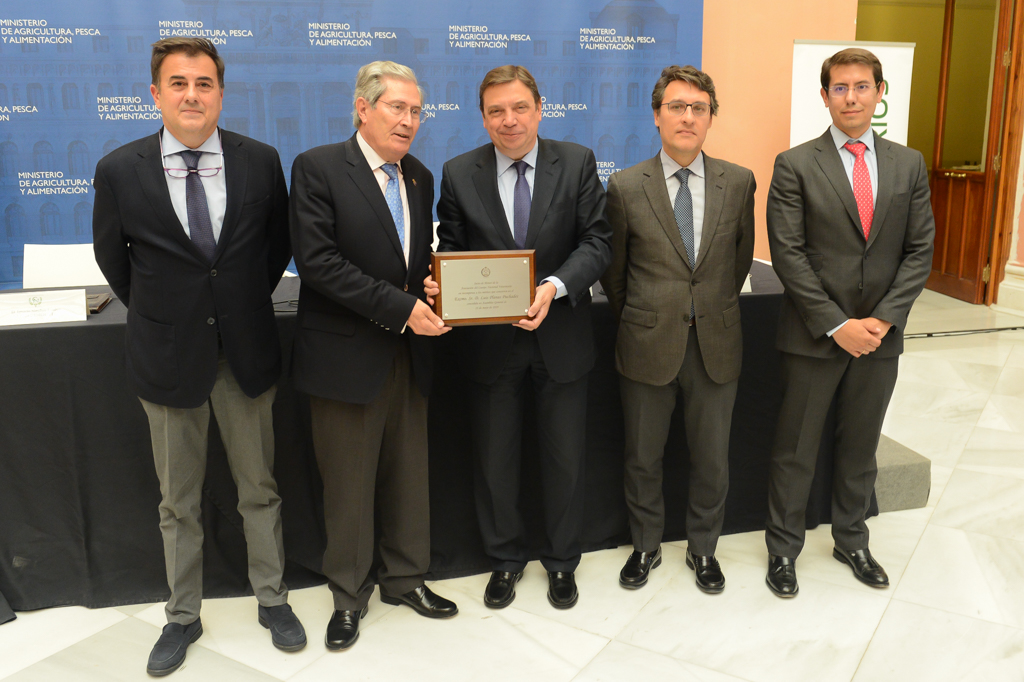 Durante el acto, el presidente de la Asociación del Cuerpo Nacional Veterinario, Quintiliano Pérez Bonilla, ha hecho entrega de la Placa de Socio de Honor al ministro Luis Planas.