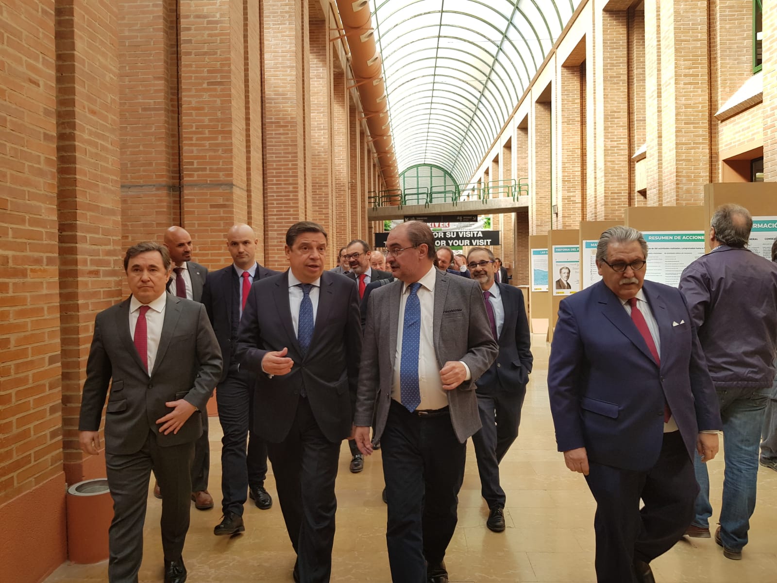 Acompañado por el presidente de Aragón, Francisco Javier Lambán, el ministro de Agricultura ha recorrido parte de esta feria internacional que este año cuenta con cerca de mil expositores, de los que 394 proceden de otros países.