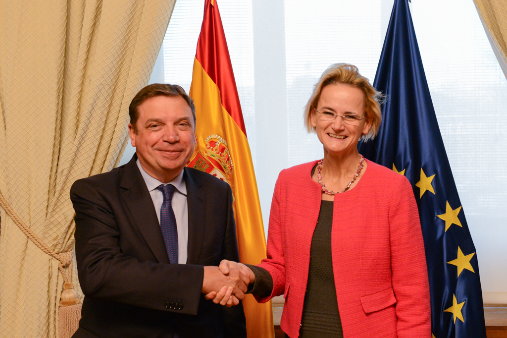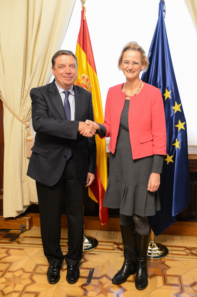 El ministro de Agricultura, Pesca y Alimentación, Luis Planas, se ha reunido hoy, en la sede del Ministerio, con la embajadora de Hungría, Enikő Győri.