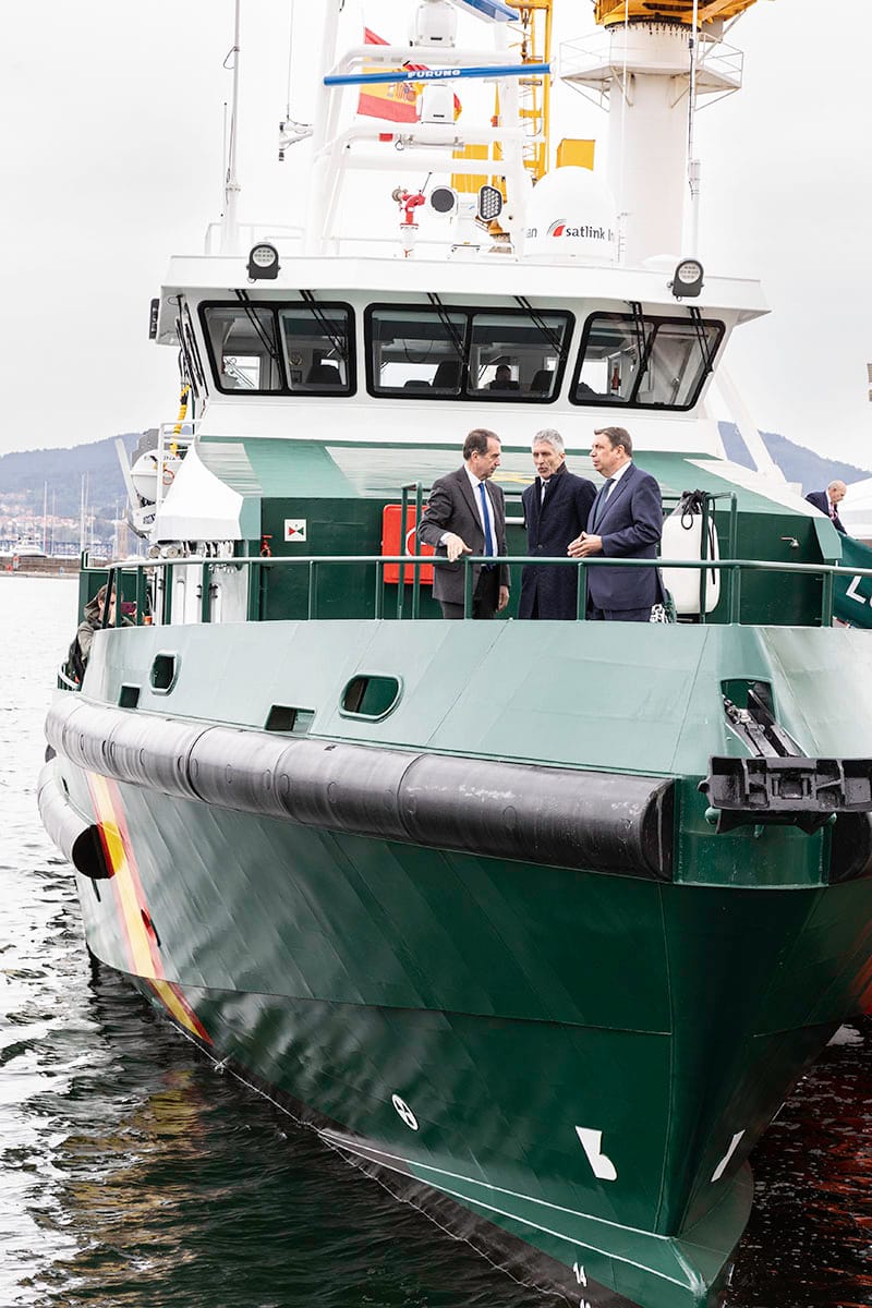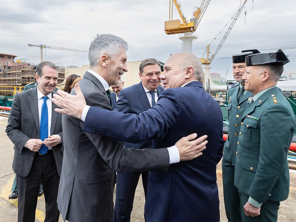 Los ministros de Agricultura, Pesca y Alimentación, Luis Planas, y del Interior, Fernando Grande Marlaska, han presidido hoy en el puerto de Vigo el acto de entrega a la Guardia Civil de la última de las cuatro patrulleras de nueva construcción, bautizada como “Río Luna”, que se van a destinar a labores de inspección pesquera.