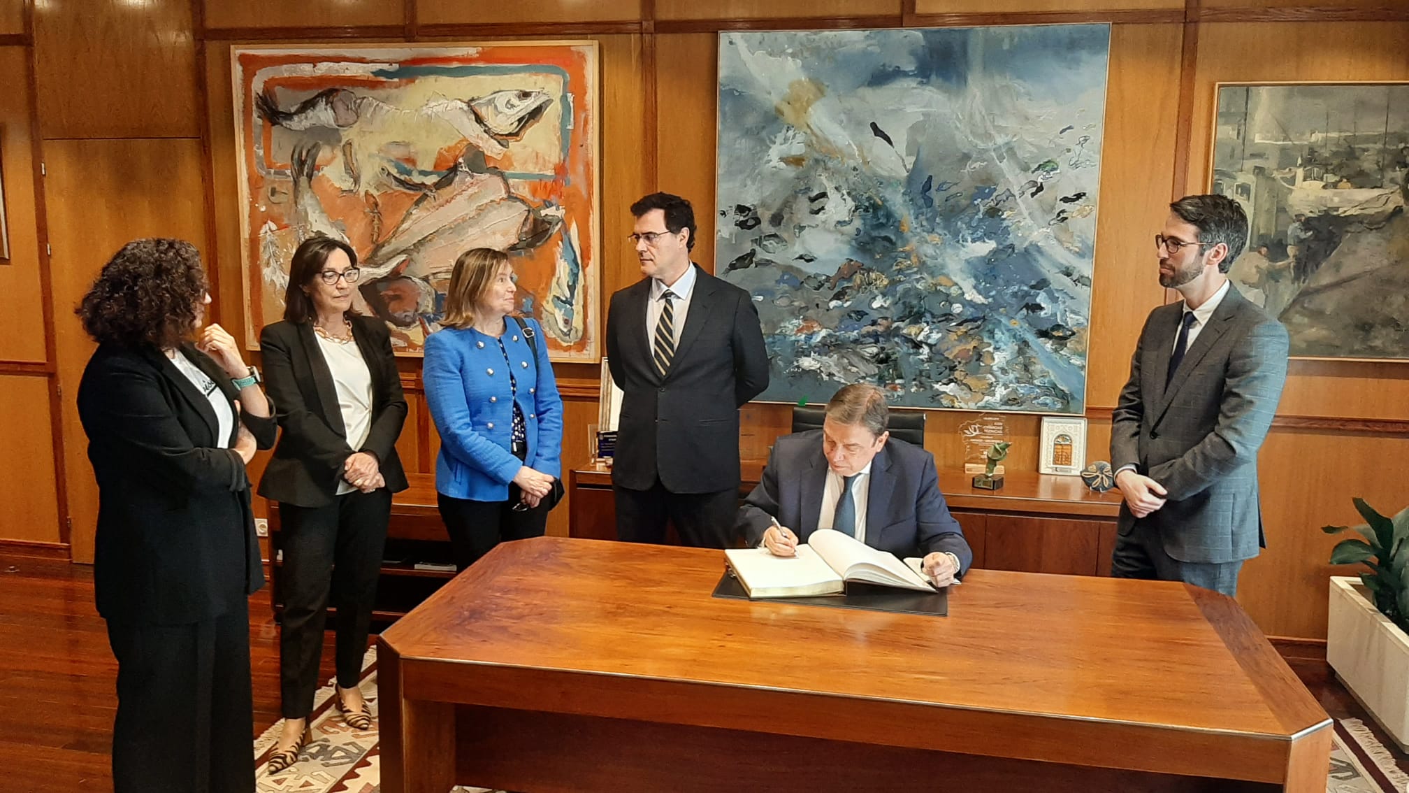 Tras el acto de entrega, ambos ministros han visitado las instalaciones de I+D+i de la Asociación Nacional de Fabricantes de Conservas de Pescados y Mariscos -Centro Técnico Nacional de Conservación de Productos de la Pesca (Anfaco-Cecopesca). La organización cuenta con 252 empresas asociadas, que emplean a más de 25.000 trabajadores de forma directa.