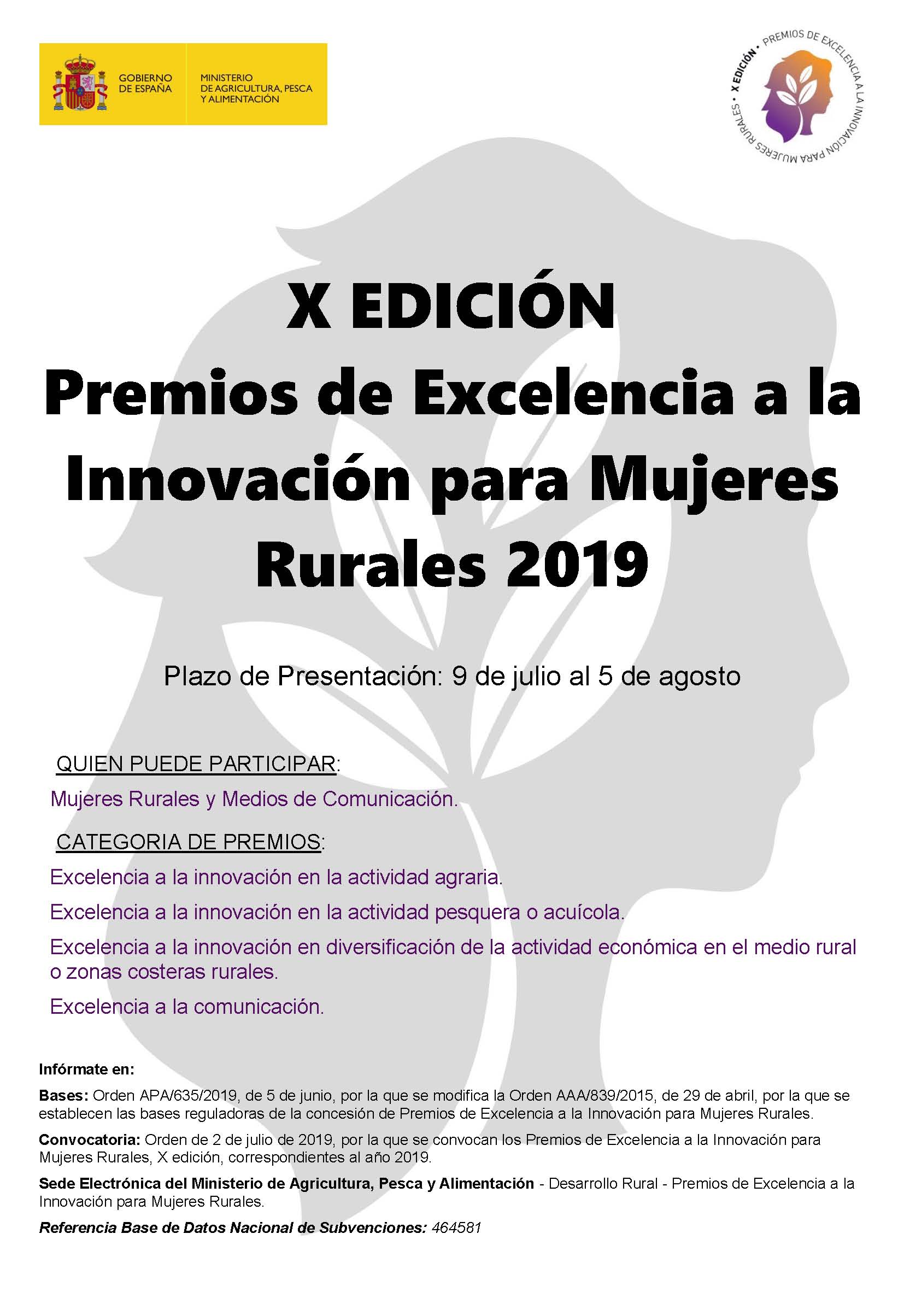 El Ministerio de Agricultura, Pesca y Alimentación ha convocado los Premios de Excelencia a la Innovación para Mujeres Rurales correspondientes al año 2019, mediante un extracto de Orden  que se publica hoy en el Boletín Oficial del Estado.