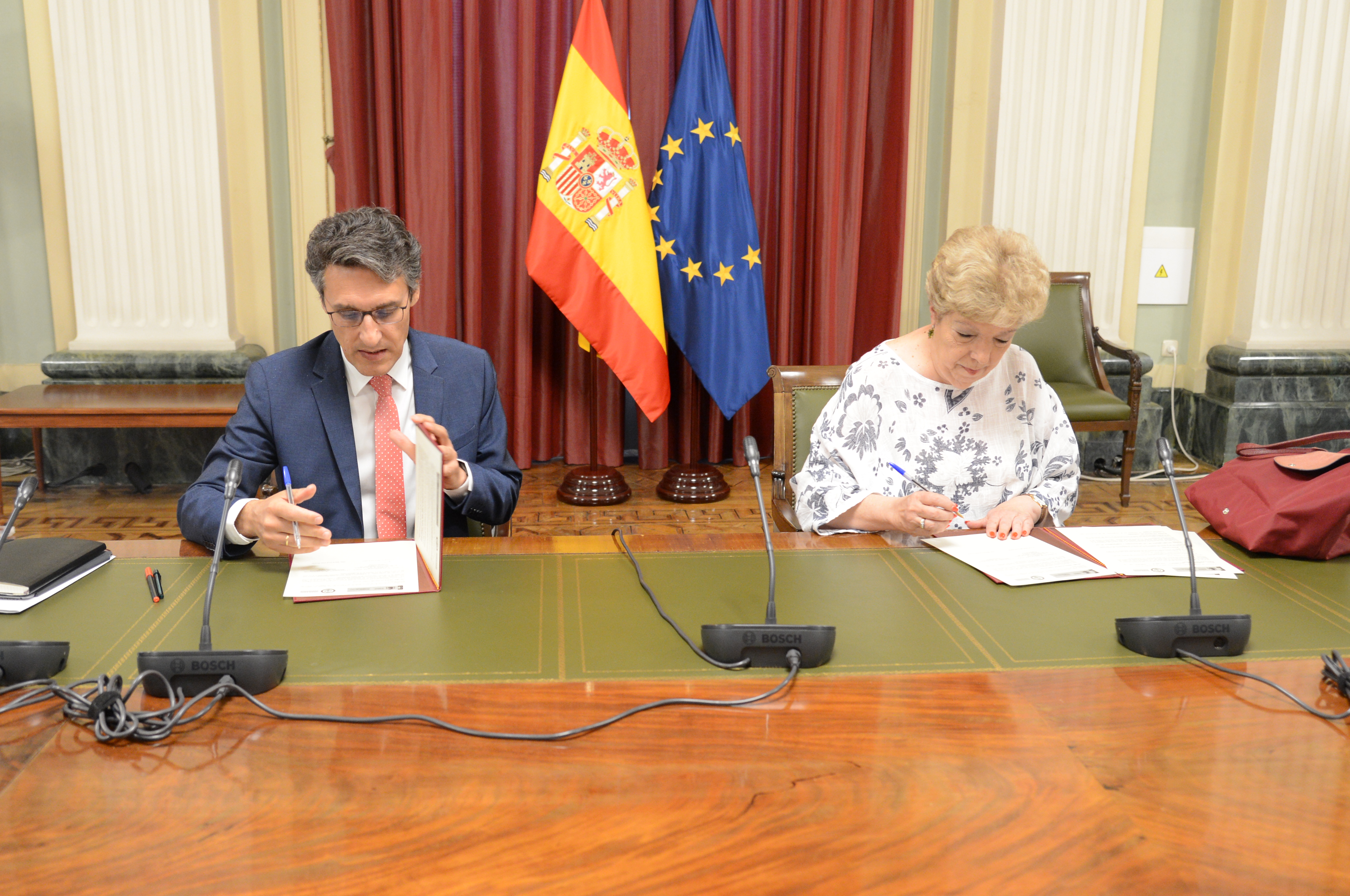 El secretario general de Agricultura y Alimentación, Fernando Miranda y la presidenta de la Asociación Nacional de Ingenieros Agrónomos (ANIA), María Cruz Díaz, han firmado hoy, en la sede del ministerio, un convenio de colaboración para organizar conjuntamente el V Congreso Nacional de Ingenieros Agrónomos del año 2022, bajo el lema “Soluciones de la ingeniería agronómica para el reto demográfico”.