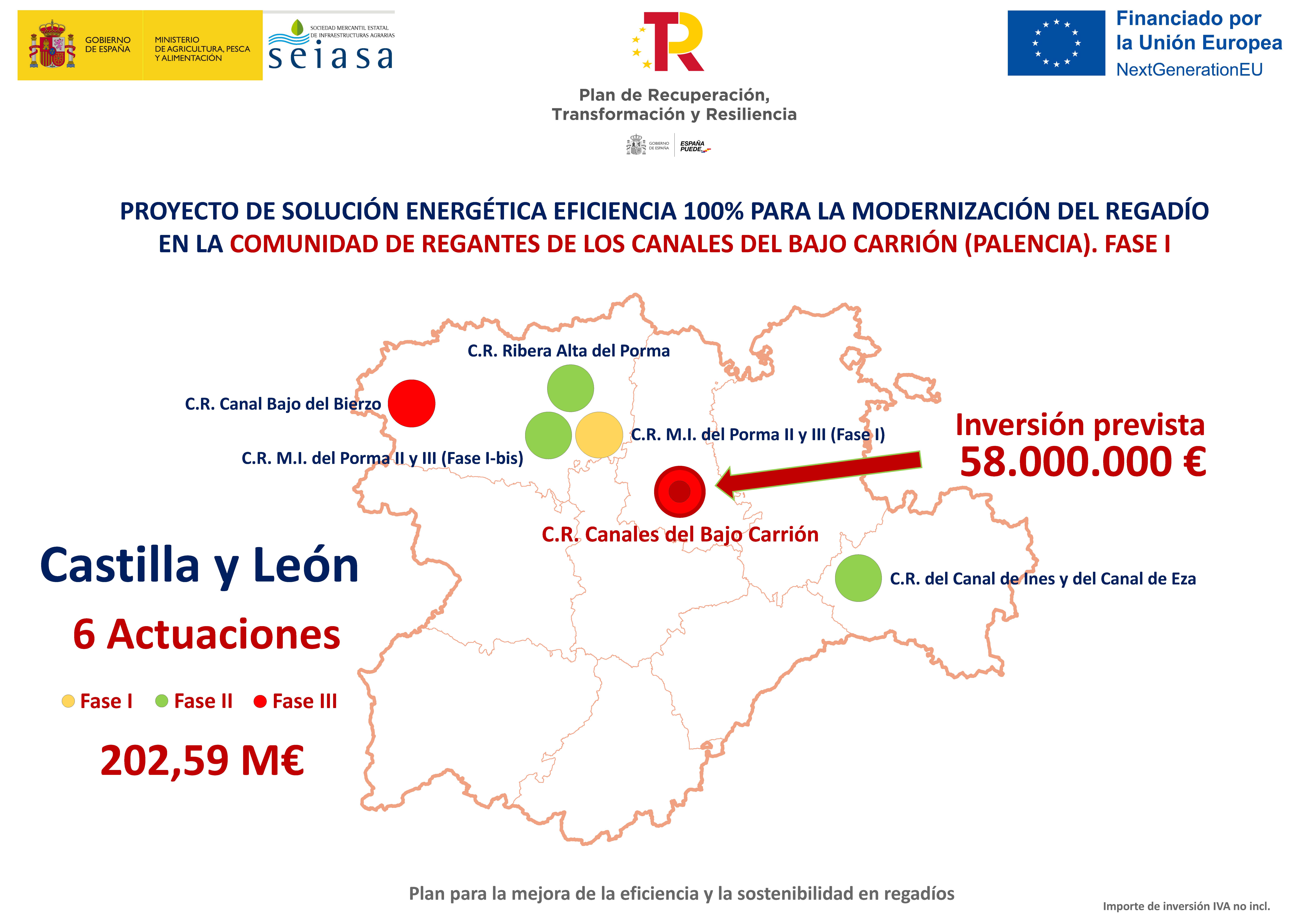 Por otro lado, el ministerio ha firmado en Palencia un convenio con la comunidad de regantes de los Canales del Bajo Carrión, por valor de 58 millones de euros, para la ejecución del proyecto de solución energética eficiencia 100 % para la modernización del regadío.