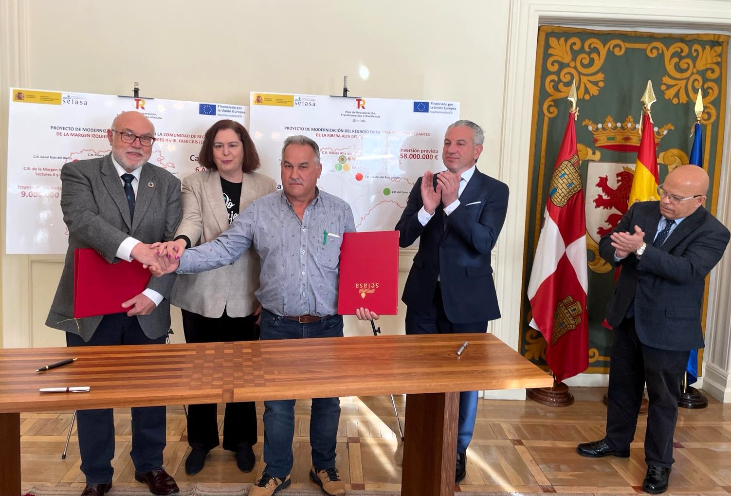 El Ministerio de Agricultura, Pesca y Alimentación, a través de la Sociedad Mercantil Estatal de Infraestructuras Agrarias (SEIASA), ha formalizado hoy tres convenios para invertir 125 millones de euros en las comunidades de regantes de la Margen Izquierda del Porma y Ribera Alta del Porma, en la provincia de León, y la Comunidad de Regantes de los Canales del Bajo Carrión, en Palencia.