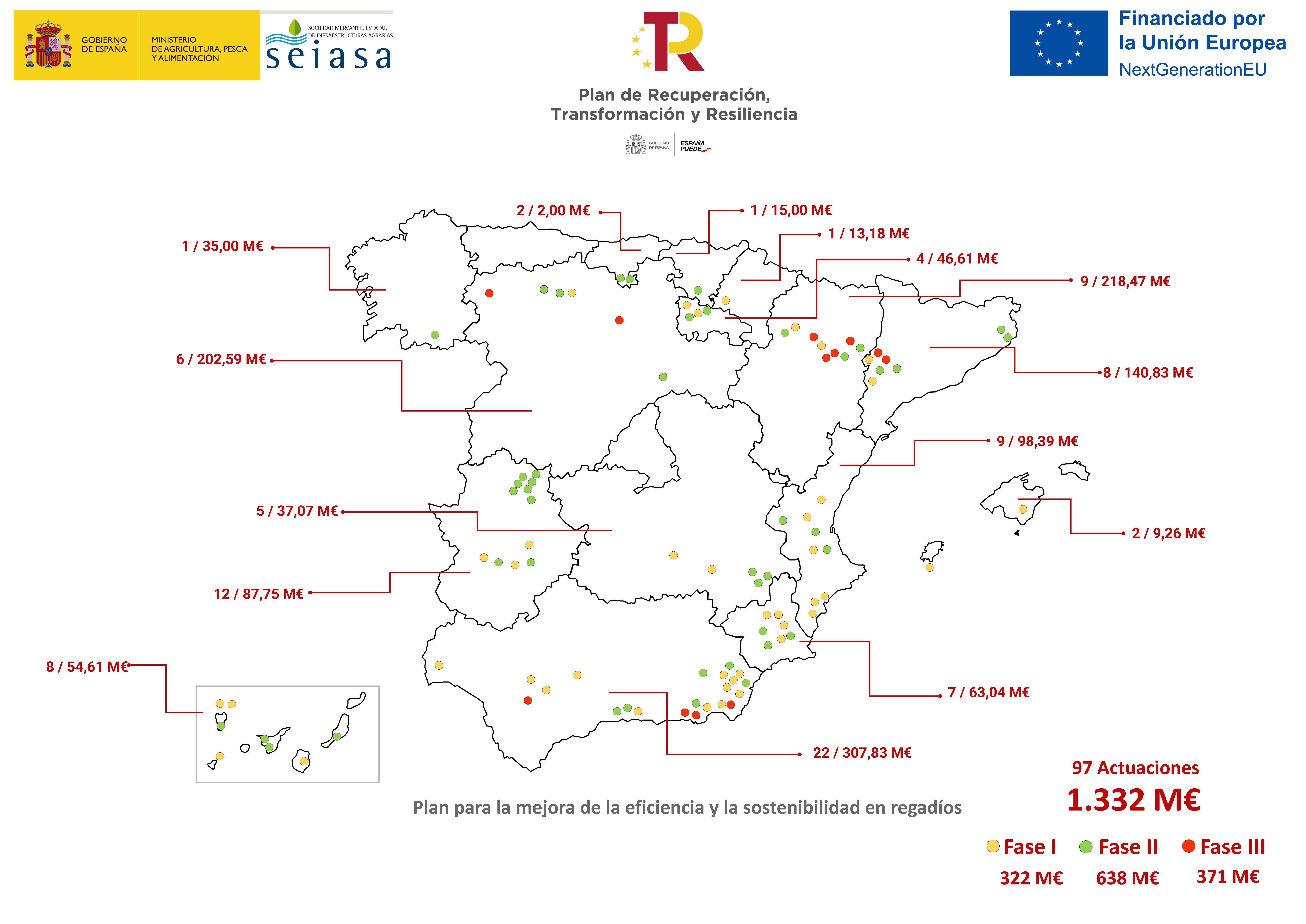 Este proyecto se enmarca en el plan para la mejora de la eficiencia y la sostenibilidad en regadíos del Plan de Recuperación, Transformación y Resiliencia, por lo que está cofinanciado por fondos Next Generation de la Unión Europea. Su carácter mixto supone que la aportación pública será de un máximo del 80 % del coste de los gastos elegibles, mientras que la comunidad de regantes aportará el otro 20 %.
