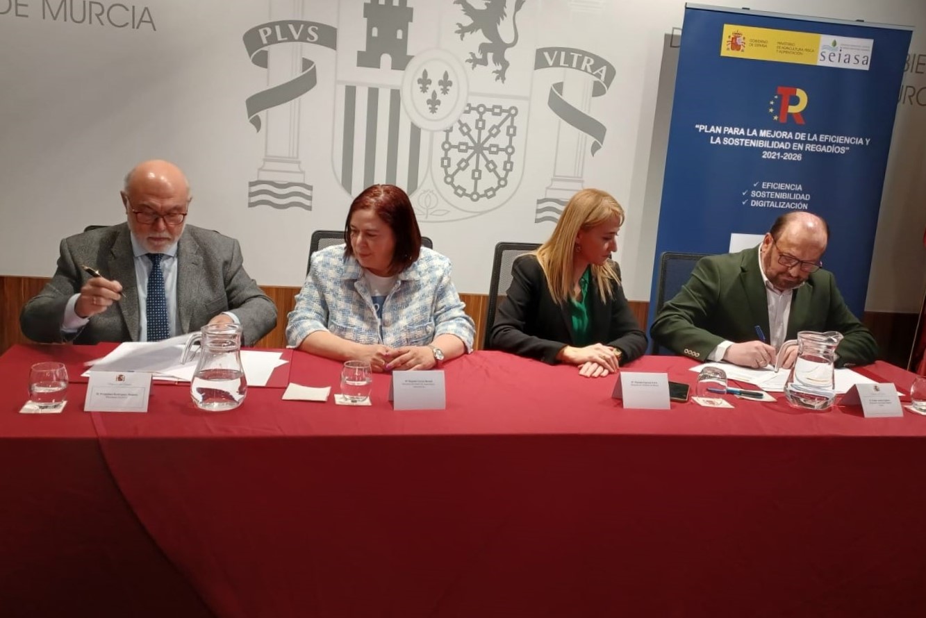 El Ministerio de Agricultura, Pesca y Alimentación (MAPA) ha firmado hoy en Murcia un convenio de colaboración con la comunidad de regantes Trasvase Tajo-Segura de Totana para invertir 26.300.000 euros (IVA no incluido) del Plan de Recuperación, Transformación y Resiliencia (PRTR), en nuevas infraestructuras que permitan regar con aguas no convencionales esta zona de la huerta murciana.