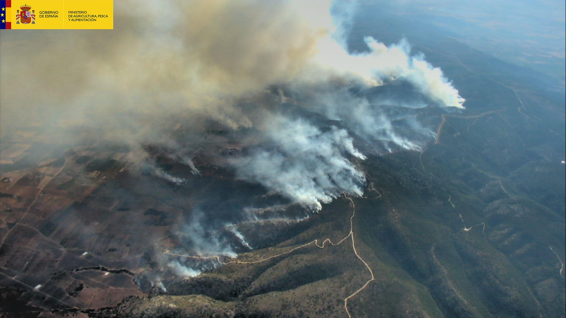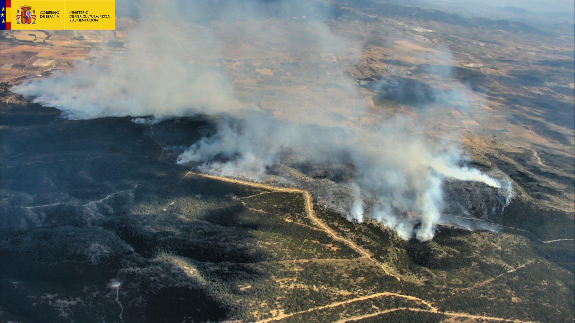 El Ministerio de Agricultura, Pesca y Alimentación ha enviado hoy, por tercer día consecutivo, medios aéreos y especialistas en labores de extinción para ayudar a la Comunidad Autónoma de Castilla y León a sofocar el incendio declarado en Sotillo de la Adrada en Ávila. También se han enviado medios aéreos y humanos para apoyar a la Comunidad Valenciana en el incendio de Beneixama en Alicante y a la Comunidad Autónoma de Aragon en el incendio de Biscarrués en Huesca.