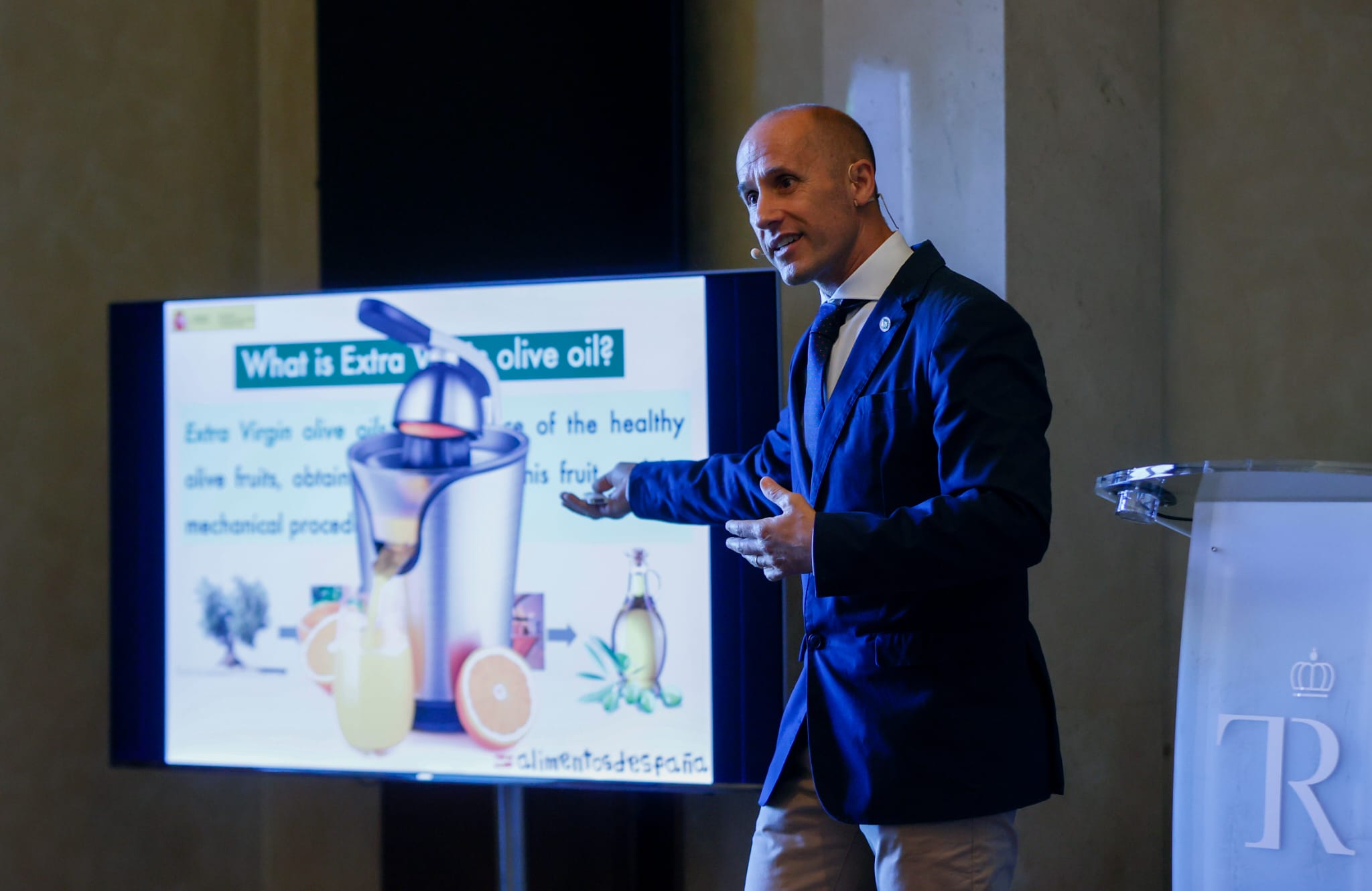 Durante el desayuno se ha ofrecido también una cata guiada de los tres aceites de oliva virgen extra galardonados en la última edición de los premios Alimentos de España, en sus tres modalidades de frutado verde dulce, frutado verde amargo, y frutado maduro.