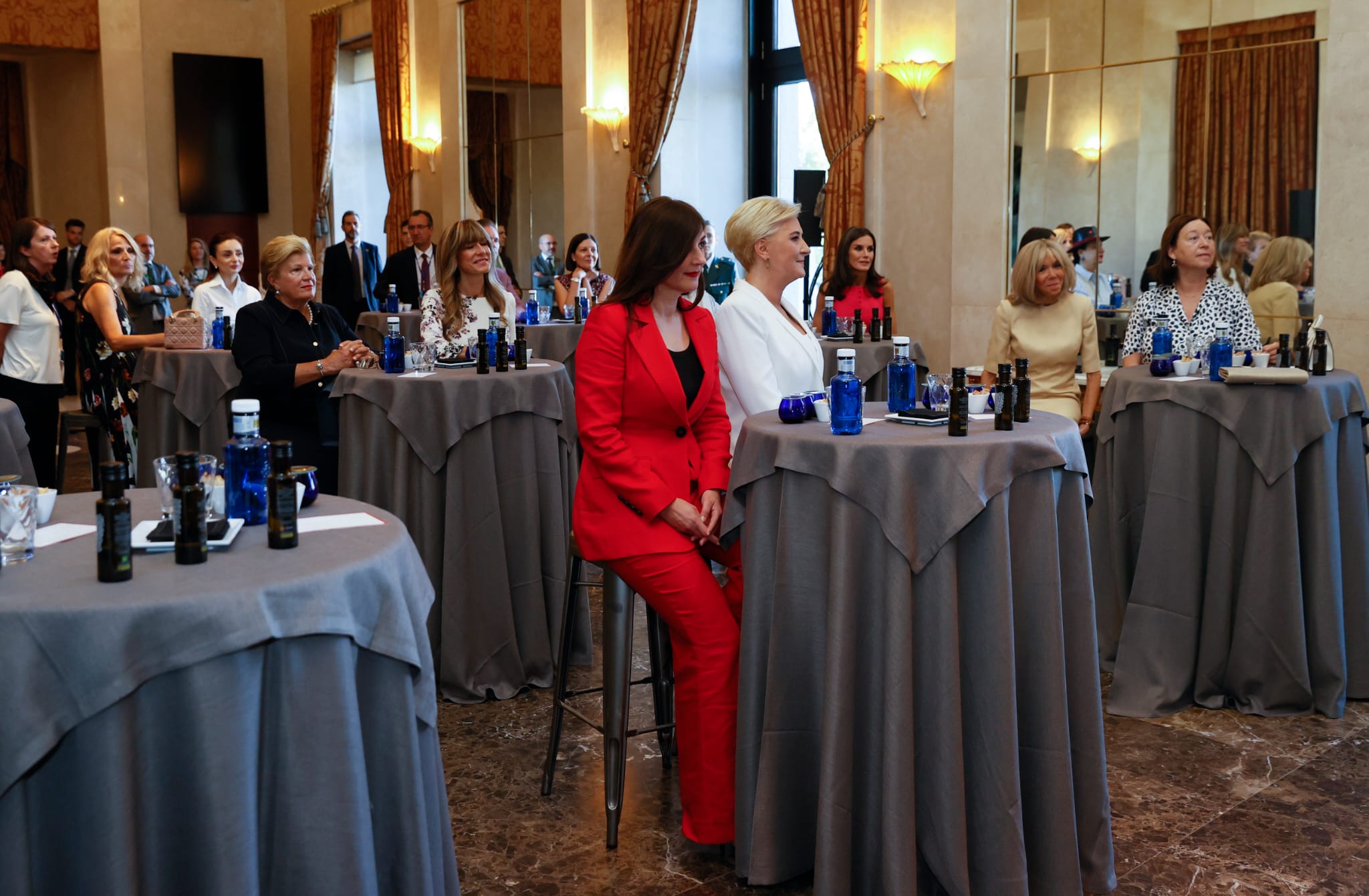 Los acompañantes de los Jefes de Estado y de Gobierno han participado en una cata de los tres aceites de oliva virgen extra galardonados con los premios Alimentos de España