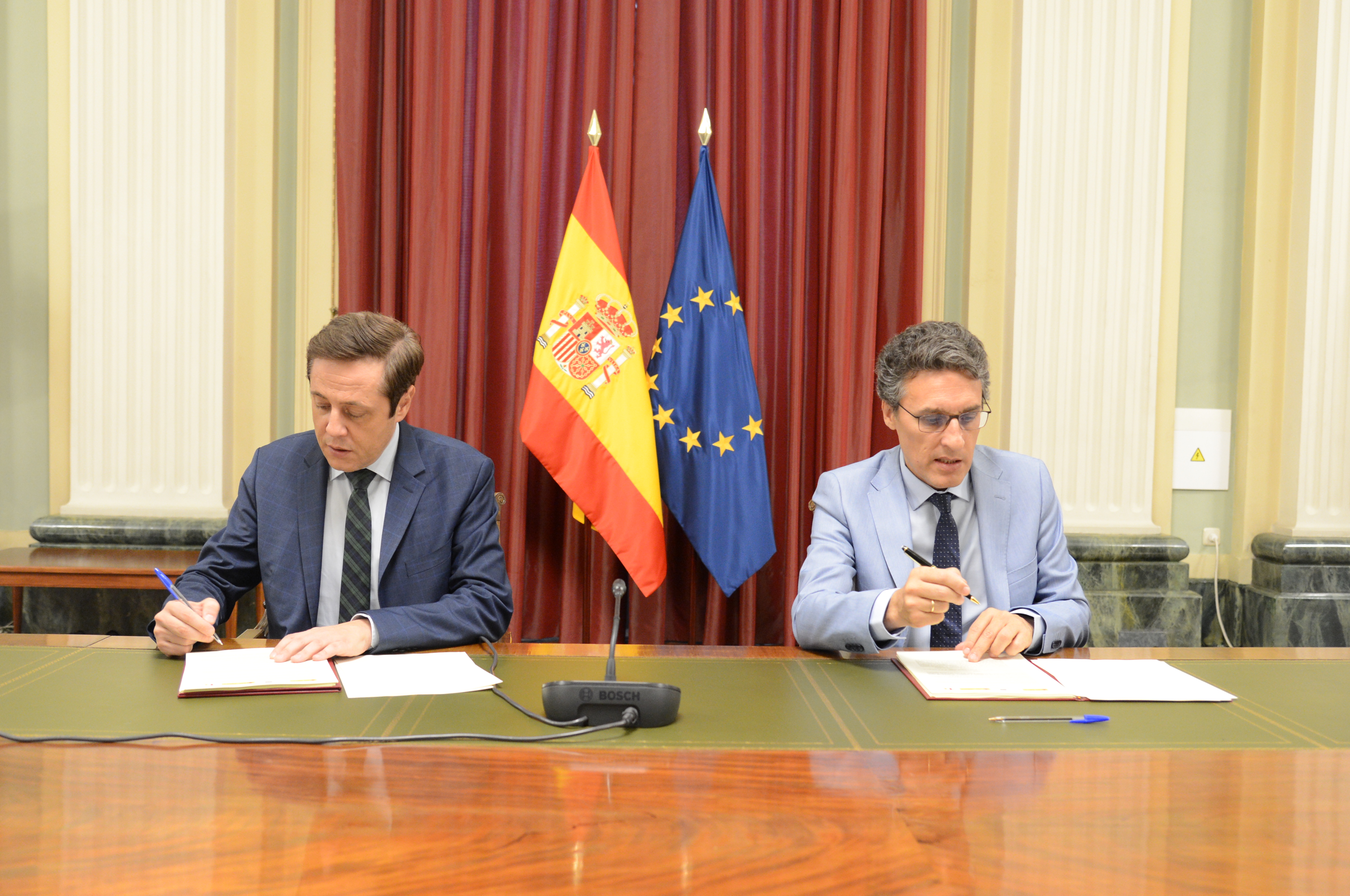 El secretario general de Agricultura y Alimentación, Fernando Miranda y el consejero delegado de ENISA, José Bayón, han suscrito hoy este acuerdo que da continuidad al firmado hace algo más de un año. El ministerio mantiene su compromiso para impulsar el desarrollo de proyectos innovadores de alta calidad que fortalezcan el tejido empresarial en el medio rural, y que prioricen la incorporación de jóvenes y mujeres. Además, ha reforzado la divulgación de la línea AgroInnpulso en ferias y eventos claves para el sector y para las zonas rurales, y en foros sobre innovación dirigidos a jóvenes y mujeres.