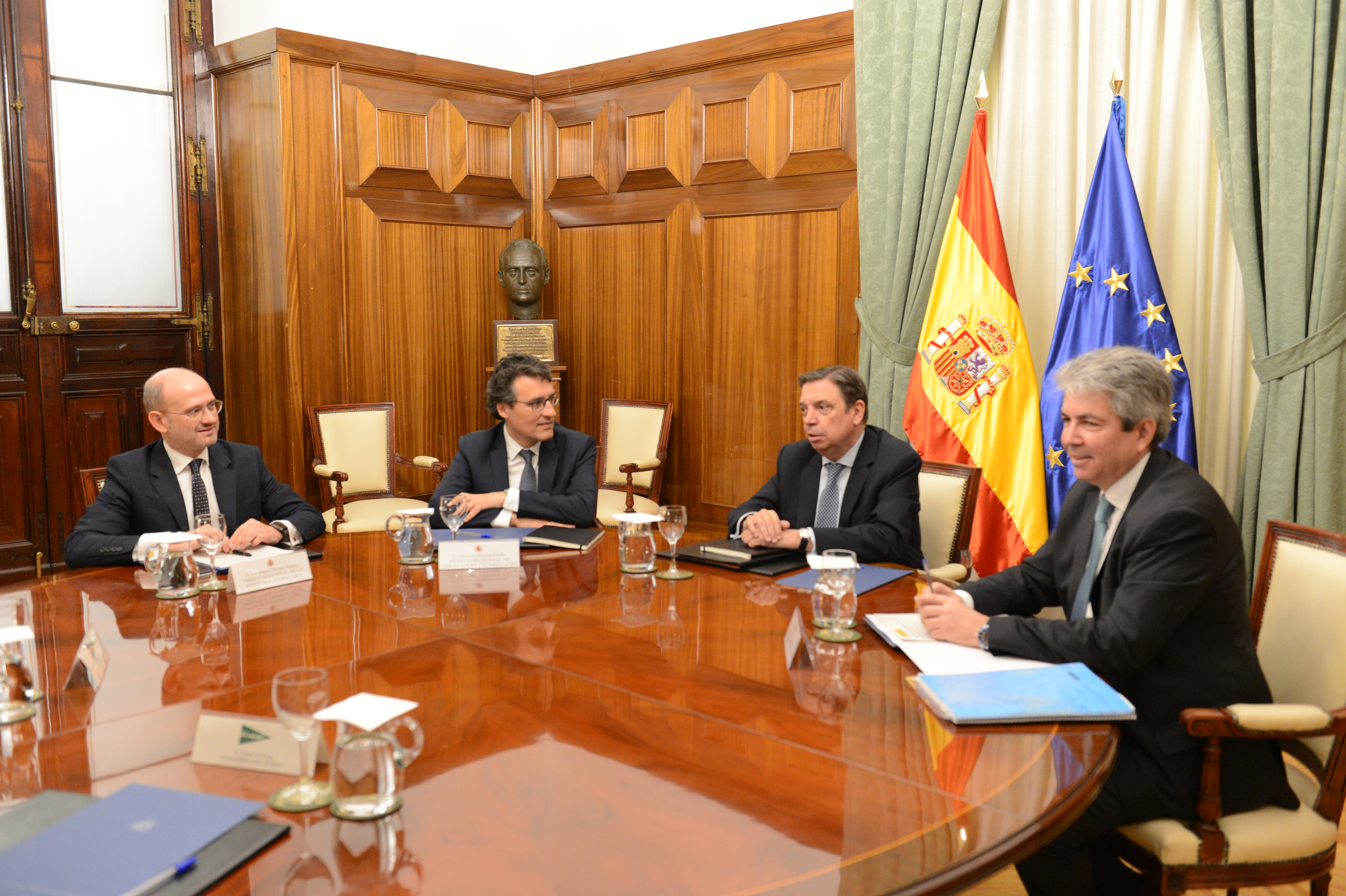 El ministro de Agricultura, Pesca y Alimentación, Luis Planas, se ha reunido hoy, en la sede del Ministerio, con responsables de El Corte Inglés, en el marco de la ronda de contactos emprendida para analizar el funcionamiento de la cadena alimentaria.
