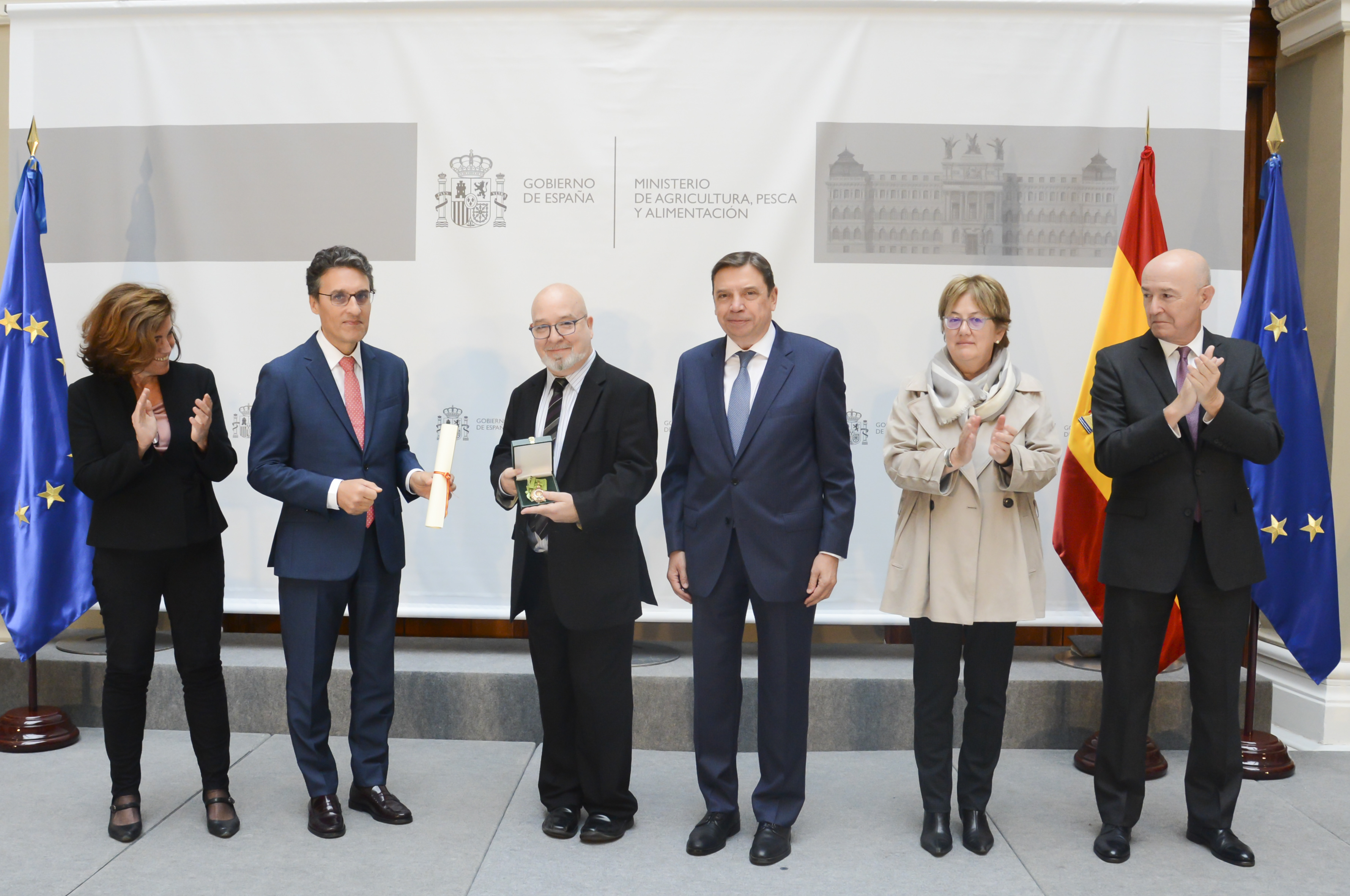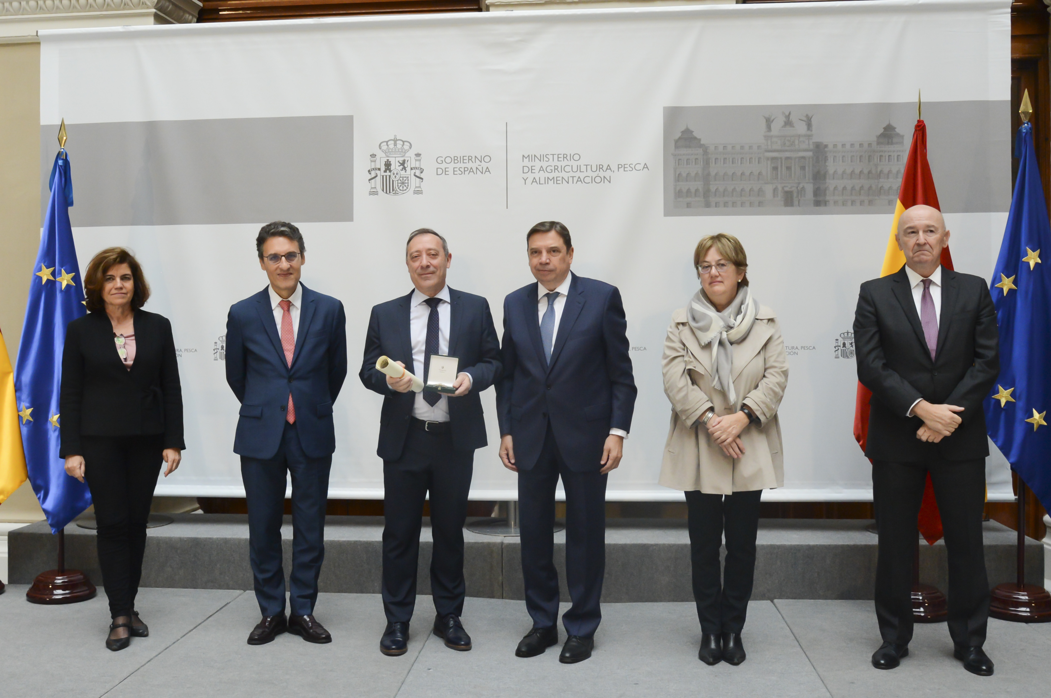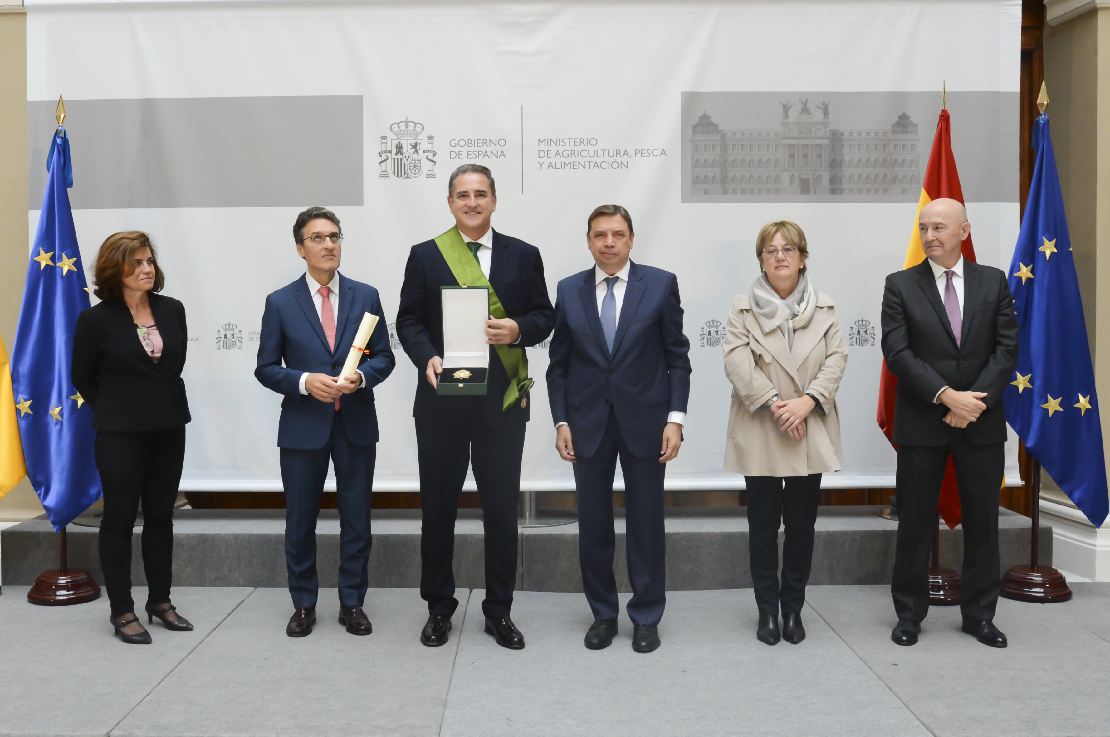 Las grandes cruces del Mérito Agrario han sido para Juan Vicente Safont Ballester, agricultor y presidente de la cooperativa Anecoop, por su prolongada y destacada trayectoria en el ámbito del cooperativismo agrario; Florentino Mangas Blanco, presidente, desde 1988, de la Sociedad Cooperativa Bajo Duero (COBADU) por su dedicación al fomento y promoción de la actividad rural; y Lorenzo Ramos Silva, secretario general de Unión de Pequeños Agricultores (UPA) por toda una carrera en defensa de los profesionales de la agricultura y la ganadería, en particular de las explotaciones familiares.