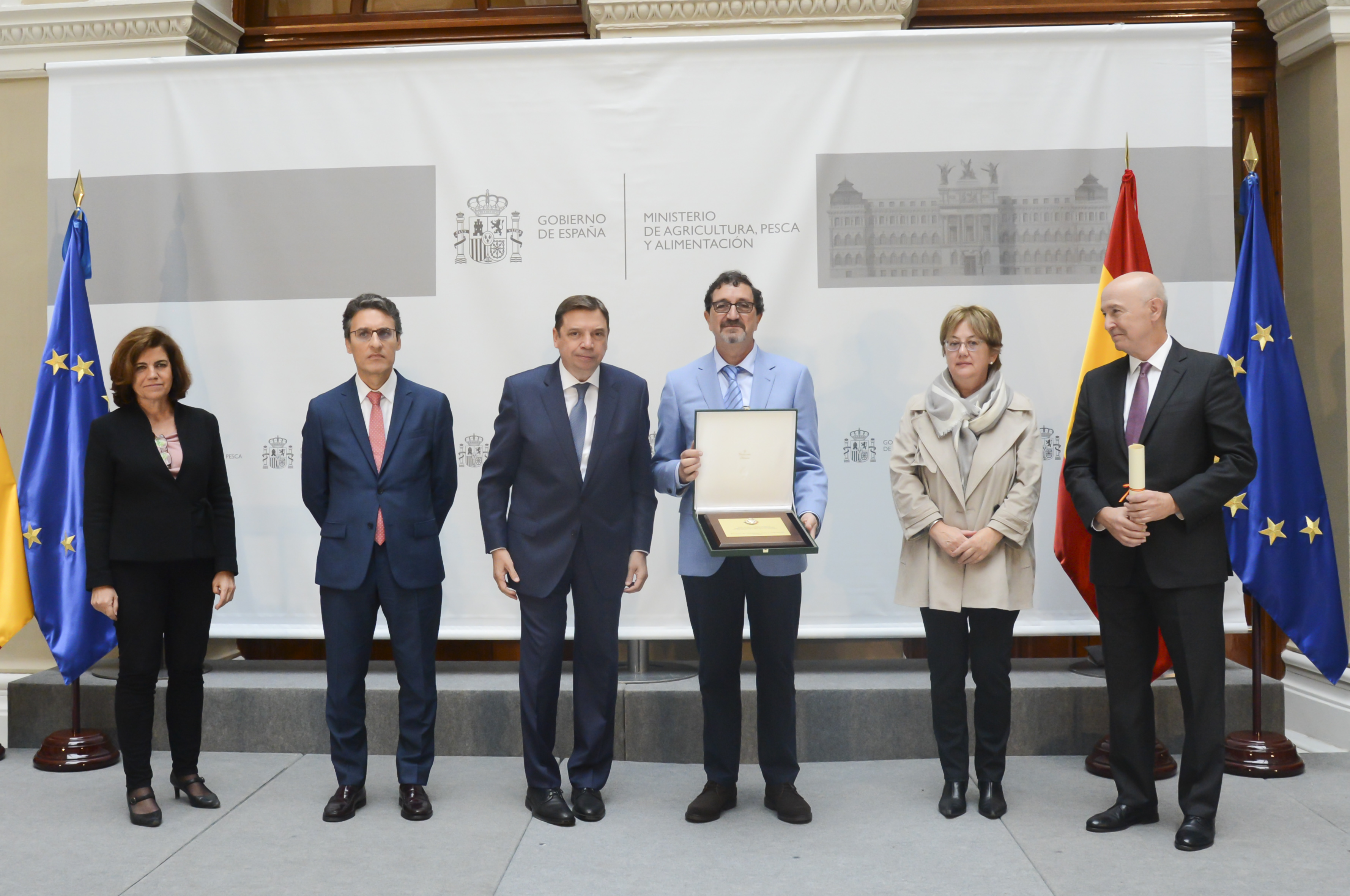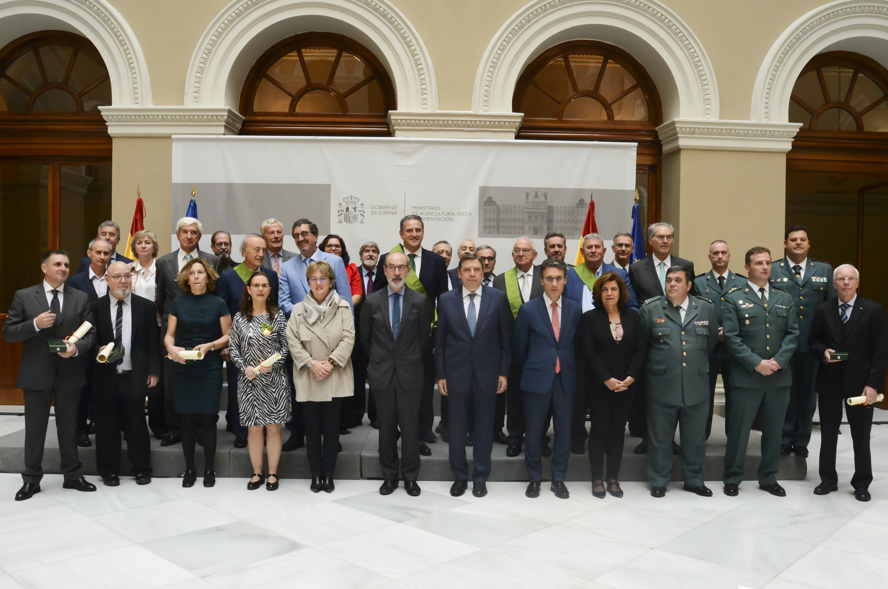 El ministro de Agricultura, Pesca y Alimentación, Luis Planas, ha impuesto, esta mañana en la sede del ministerio, 25 condecoraciones de la Orden Civil del Mérito Agrario, Pesquero y Alimentario a 21 personas y cuatro entidades que “destacan por su extraordinaria labor en favor de la agricultura, la pesca y la alimentación de nuestro país”.