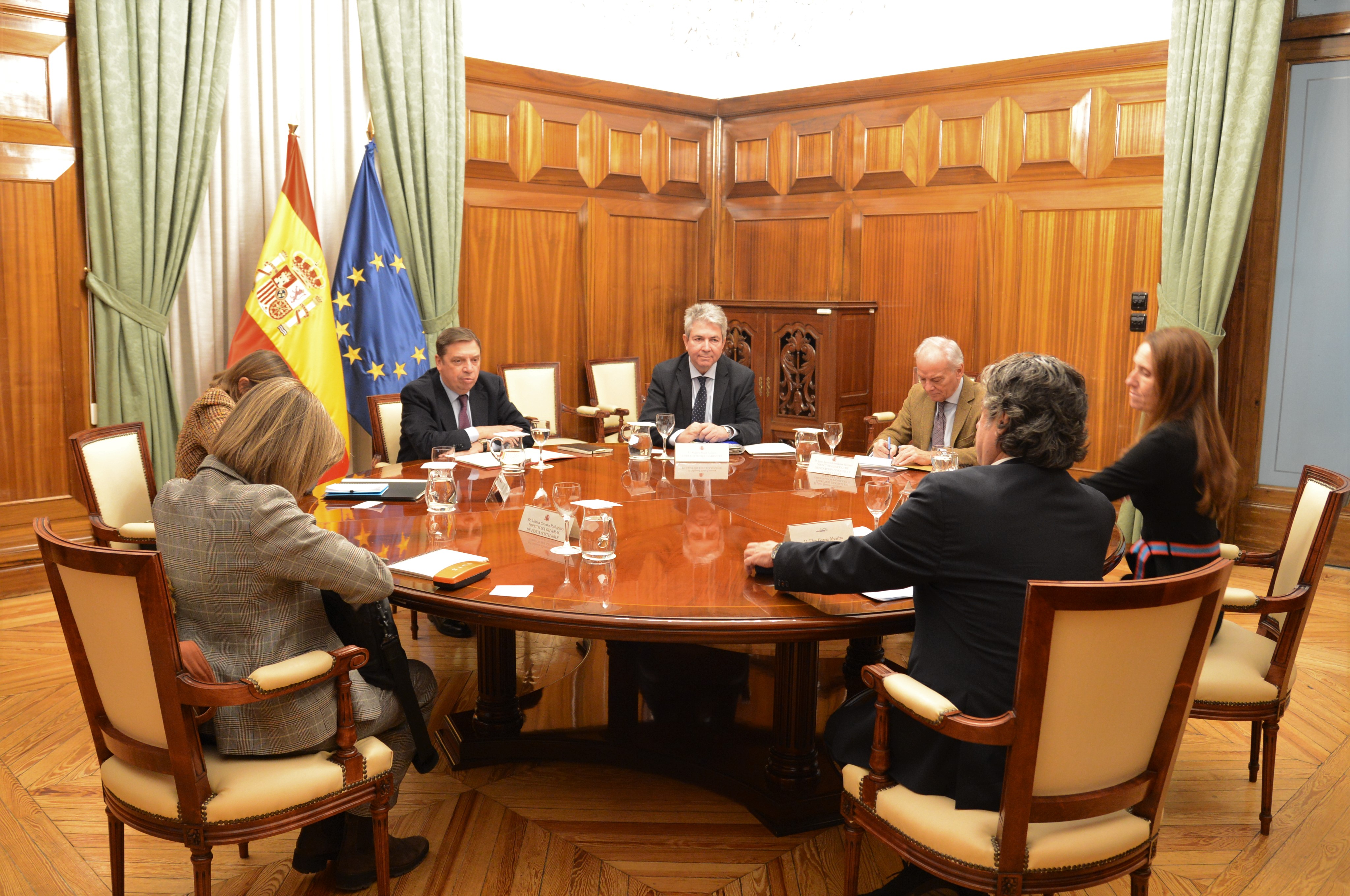 El ministro de Agricultura, Pesca y Alimentación, Luis Planas, se ha reunido hoy, en la sede del ministerio, con el nuevo presidente Conxemar, Eloy García Alvariza, y con la directora general, Yobana Bermúdez, a quienes ha reiterado el apoyo del ministerio en su tarea de impulsar la competitividad del sector pesquero y acuícola.