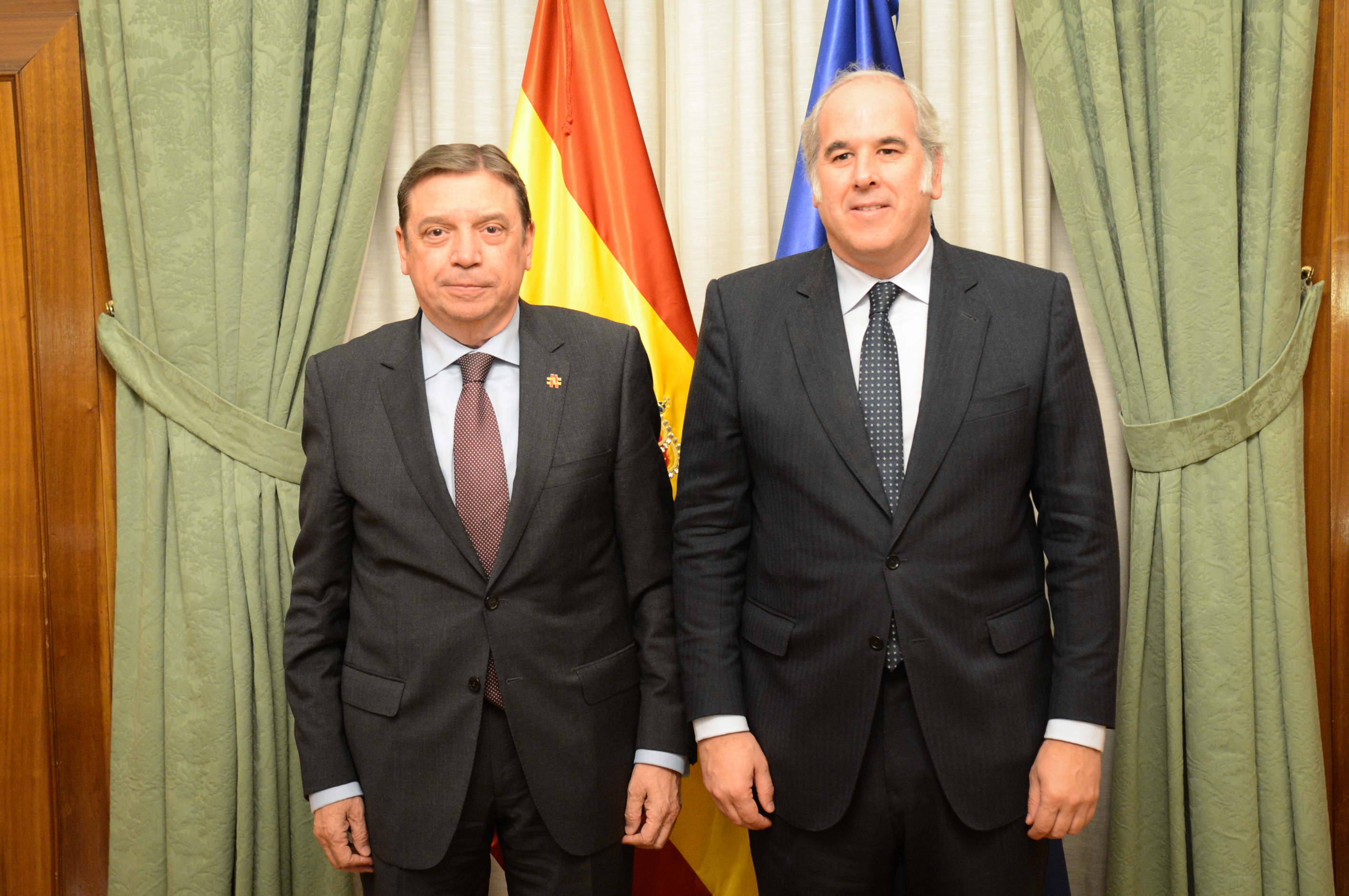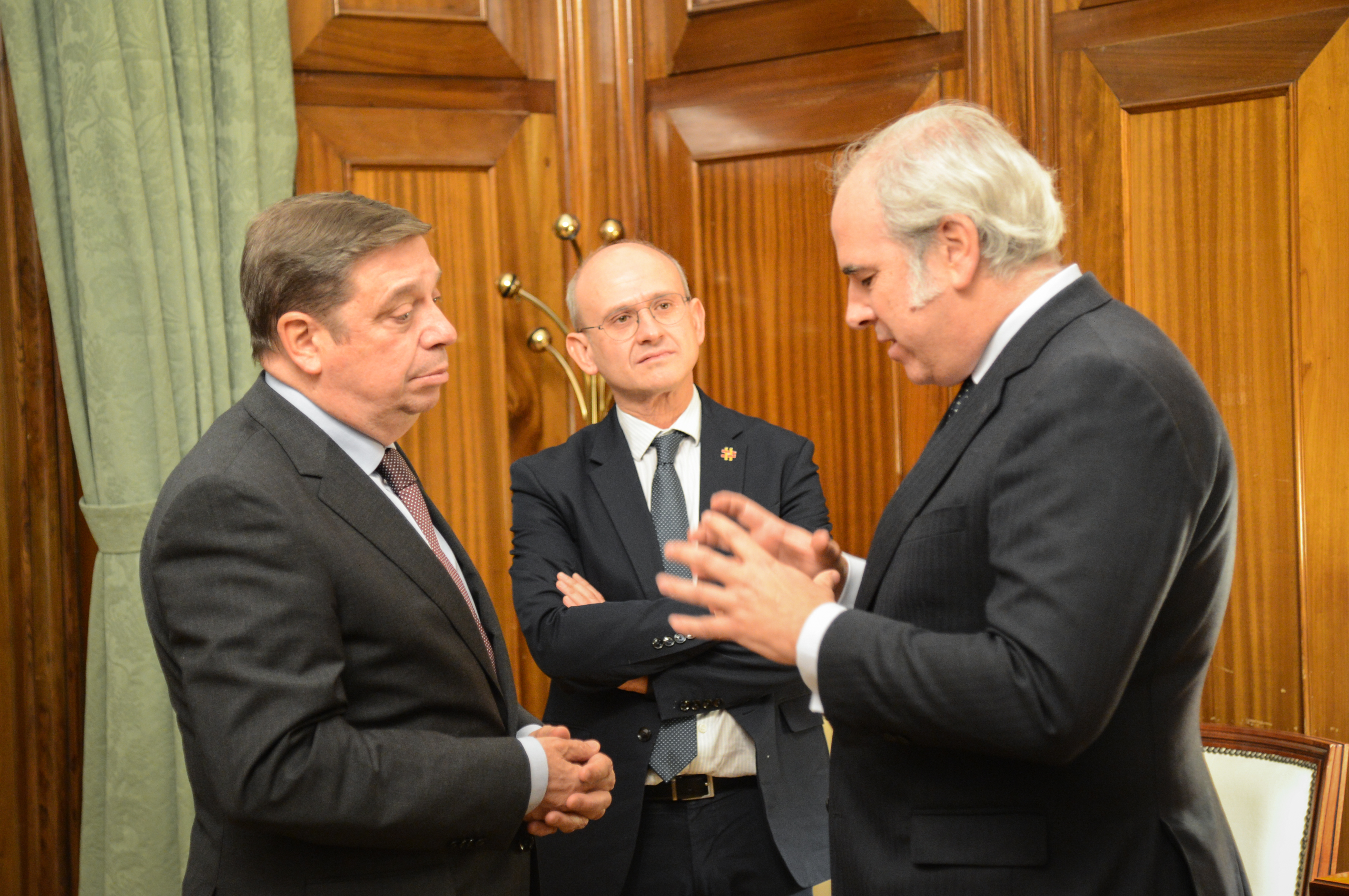 El ministro de Agricultura, Pesca y Alimentación, Luis Planas, se ha reunido hoy con el presidente de la Real Academia de Gastronomía, Luis Suárez de Lezo, a quien ha felicitado por su reciente nombramiento para presidir esta institución dedicada a la investigación, protección y difusión de la cultura gastronómica española en colaboración con las administraciones públicas.