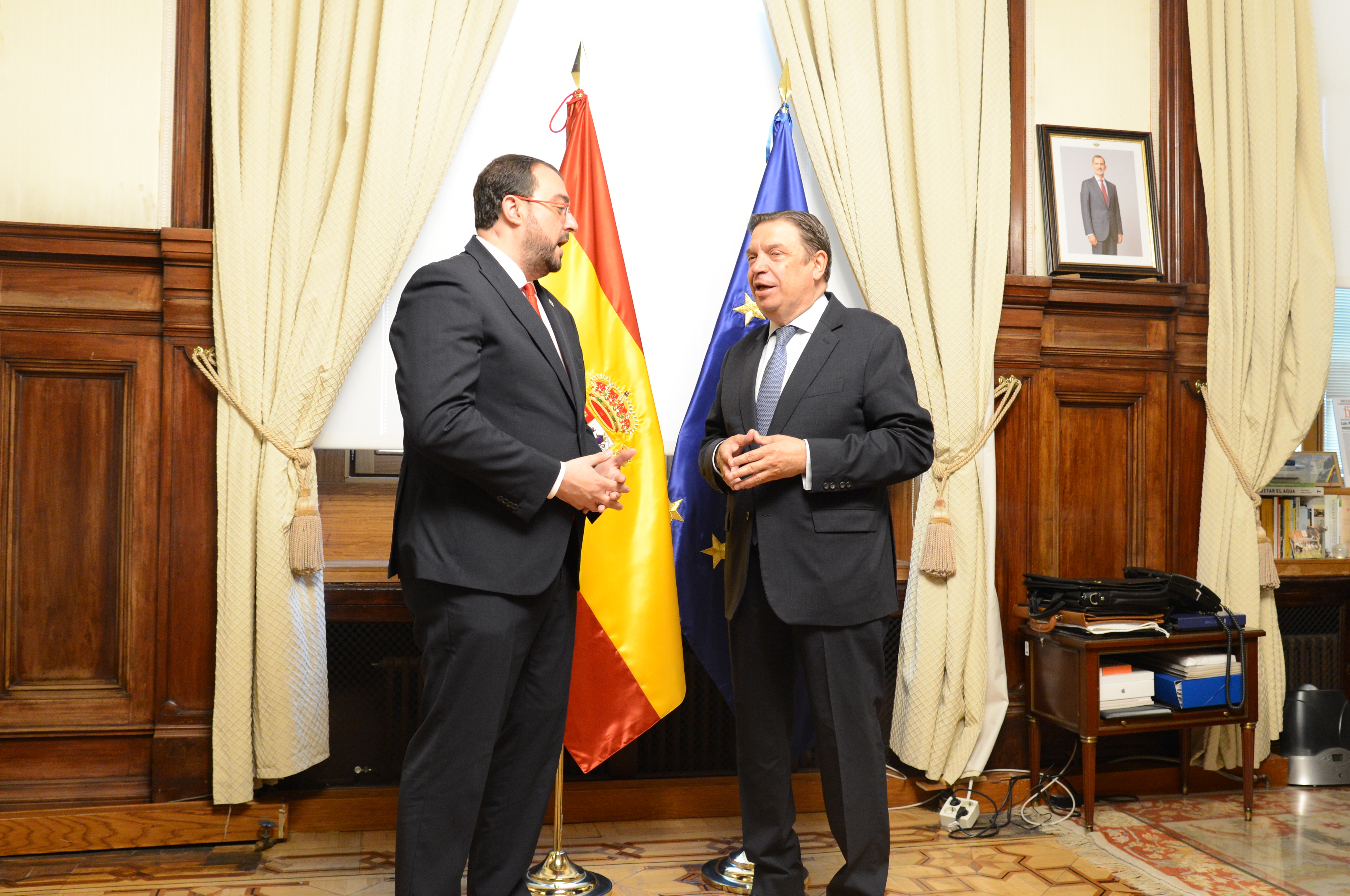 El ministro de Agricultura, Pesca y Alimentación, Luis Planas, ha mantenido hoy una reunión, en la sede del ministerio, con el presidente del Principado de Asturias, Adrián Barbón, en la que han abordado diferentes temas de interés agroalimentario para el Principado.
