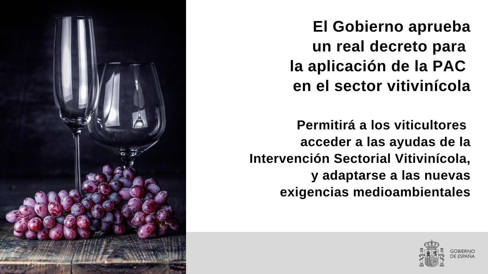 Con la aprobación de este texto legislativo, el Gobierno establece la normativa básica nacional para las ayudas al sector vitivinícola, en la que se adaptan los tipos de intervención a las exigencias medioambientales y de adaptación al cambio climático que marca la nueva PAC.