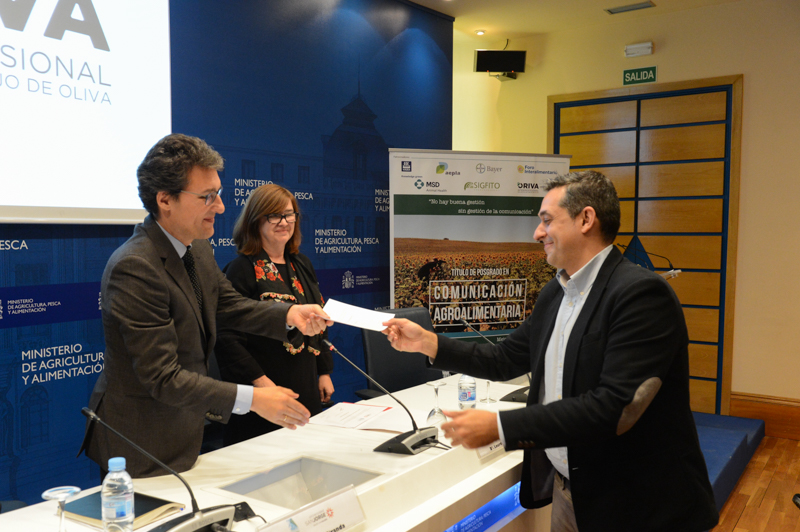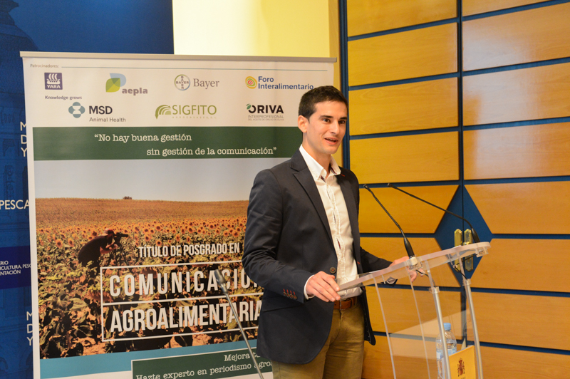 El secretario general de Agricultura y Alimentación, Fernando Miranda, ha participado en la clausura de la segunda edición del título de Experto Universitario en Comunicación Agroalimentaria, que organizan la Asociación de Periodistas Agroalimentarios de España (APAE) y la Universidad San Jorge. En el acto de clausura, celebrado en la sede del Ministerio, el secretario general ha felicitado a los alumnos que han conseguido este título, y les ha agradecido que hayan elegido el ámbito agroalimentario para el desarrollo de su carrera profesional.