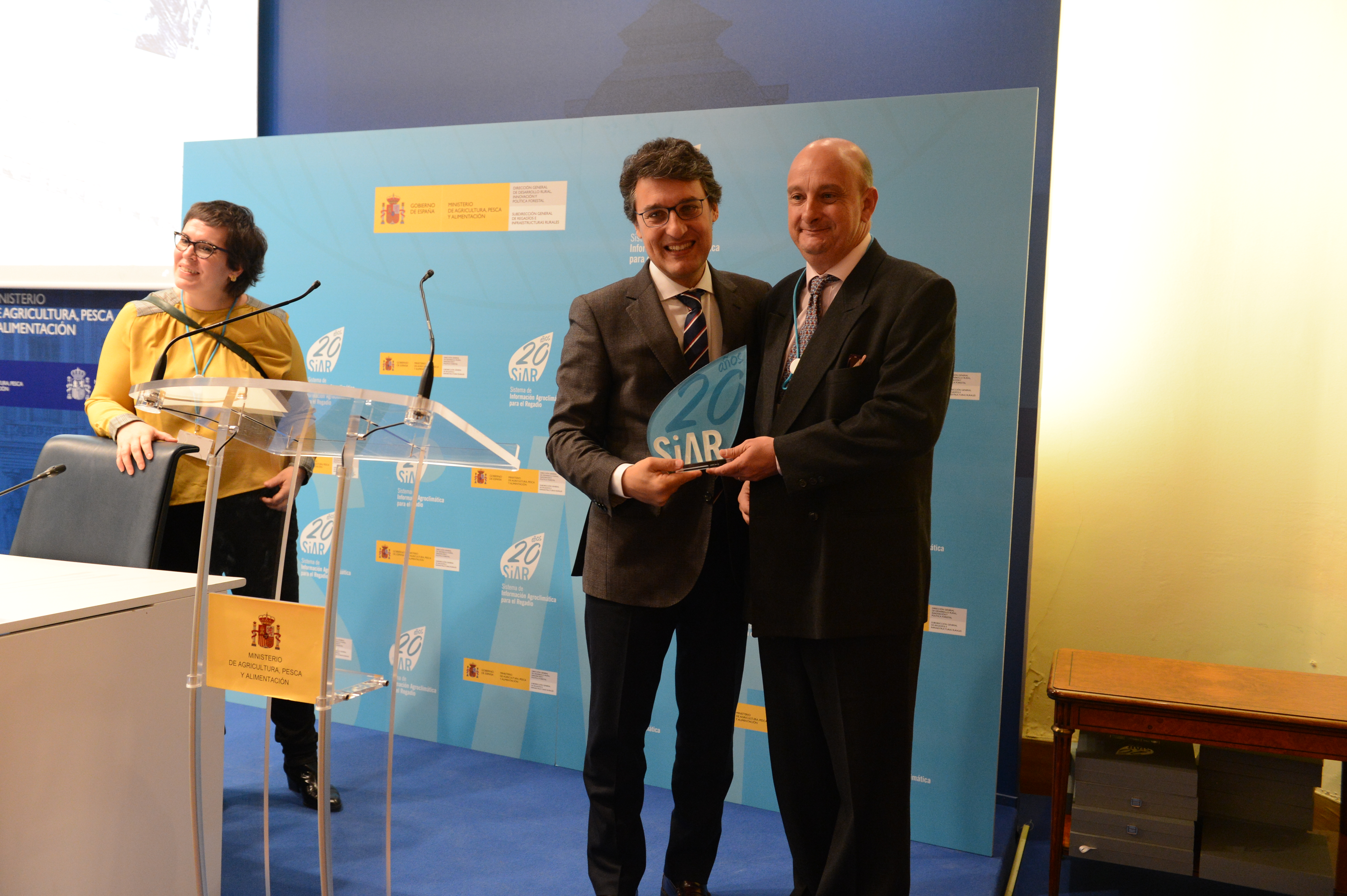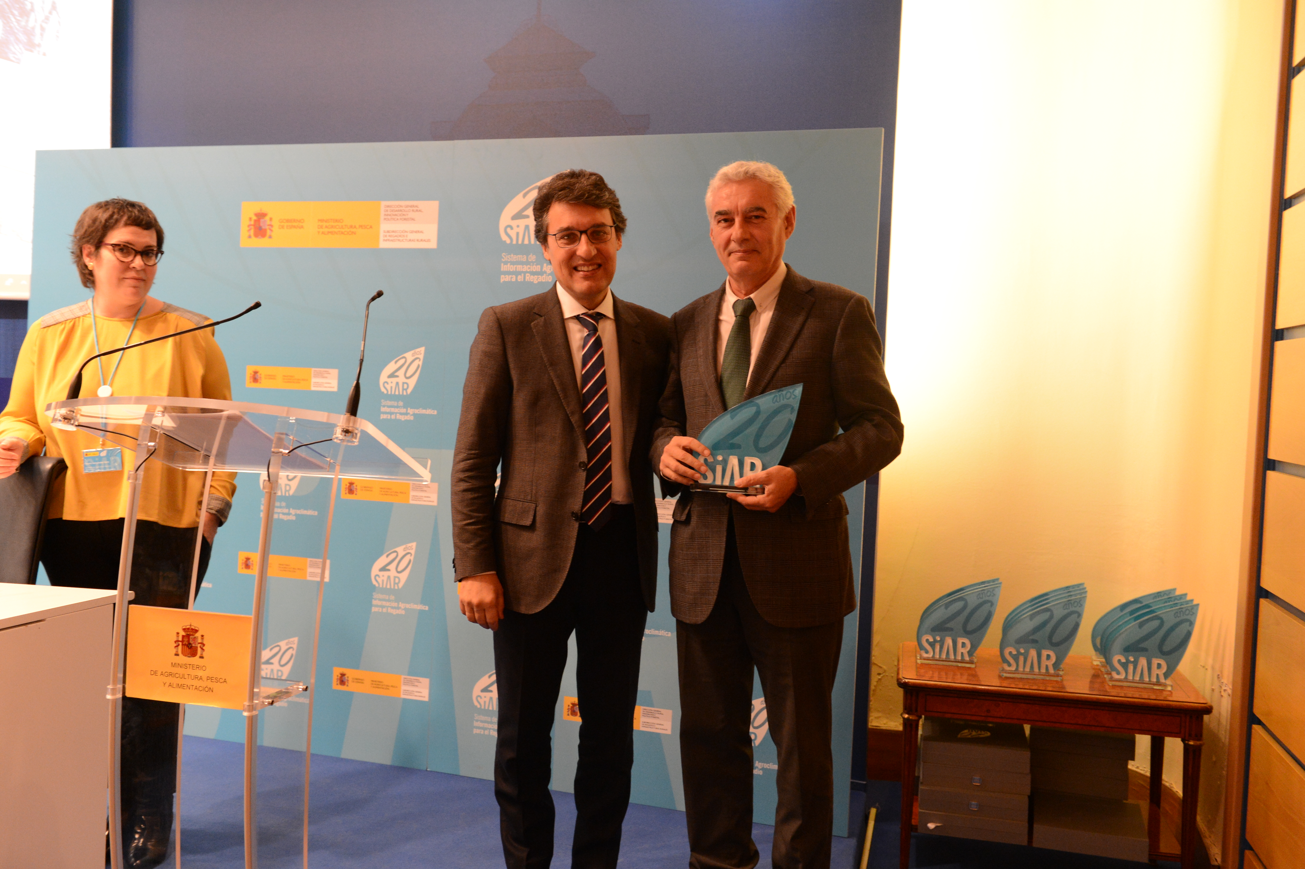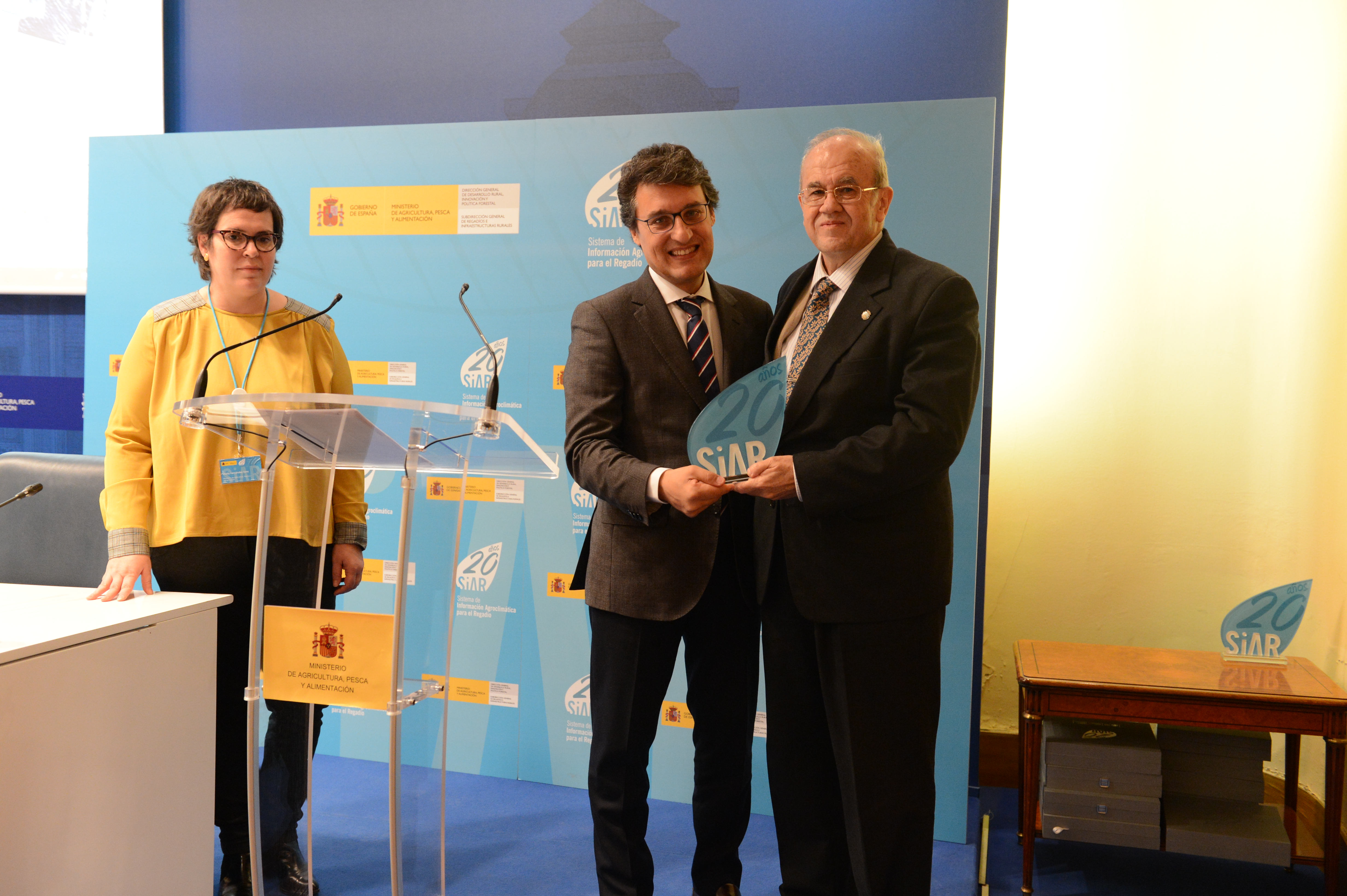 El secretario general ha concluido su intervención destacando la excelente labor que han venido realizando los servicios de asesoramiento al regante, para optimizar la gestión de los recursos hídricos por parte de la agricultura de regadío española, a los que ha entregado una distinción, así como a colaboradores destacados del SIAR como FENACORE.