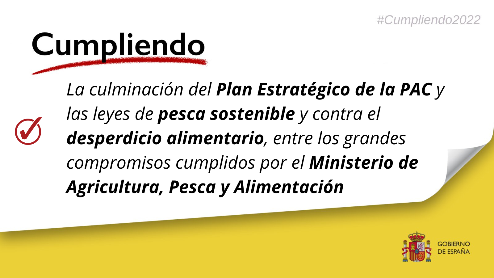 La culminación de los trabajos del Plan Estratégico Nacional para la aplicación de la Política Agraria Común (PAC) en España; las medidas de apoyo a los sectores agrario y pesquero para hacer frente al incremento de costes de producción como consecuencia de la invasión rusa de Ucrania; y la aprobación en Consejo de Ministros de los proyectos de ley de pesca sostenible y contra el desperdicio alimentario han sido algunos de los compromisos más relevantes cumplidos por el Ministerio de Agricultura, Pesca y Alimentación en el primer semestre de 2022.