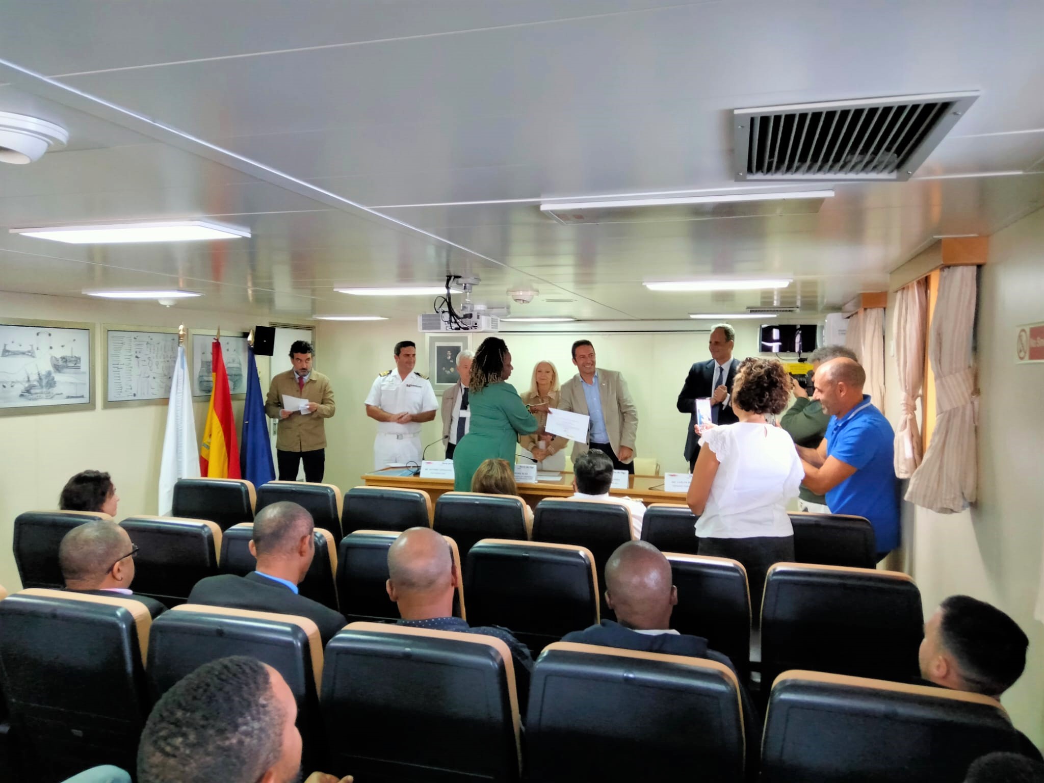 En esta edición, que se ha desarrollado del 9 al 27 de septiembre a bordo del buque escuela de cooperación pesquera “Intermares”, han participado 16 funcionarios de países anglófonos del Caribe, todos ellos con diferentes cargos de responsabilidad en sus países de origen en el ámbito de la inspección pesquera. A lo largo del curso, los alumnos han podido conocer diferentes técnicas de inspección portuaria para combatir la pesca ilegal.