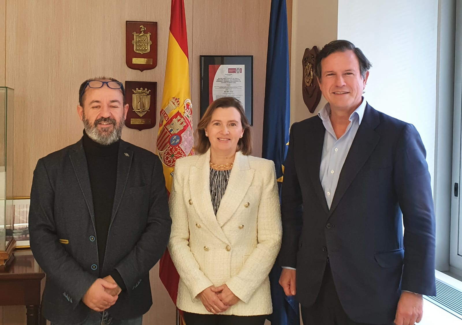 La secretaria general de Pesca, Isabel Artime, se ha reunido esta tarde, en Madrid, con el presidente de la Federación Nacional de Cofradías de Pescadores (FNCP), Basilio Otero, y con el secretario general de la Confederación Española de Pesca (Cepesca), Javier Garat, para analizar e intercambiar opiniones sobre los principales retos a los que se enfrenta el sector pesquero español y comunitario.