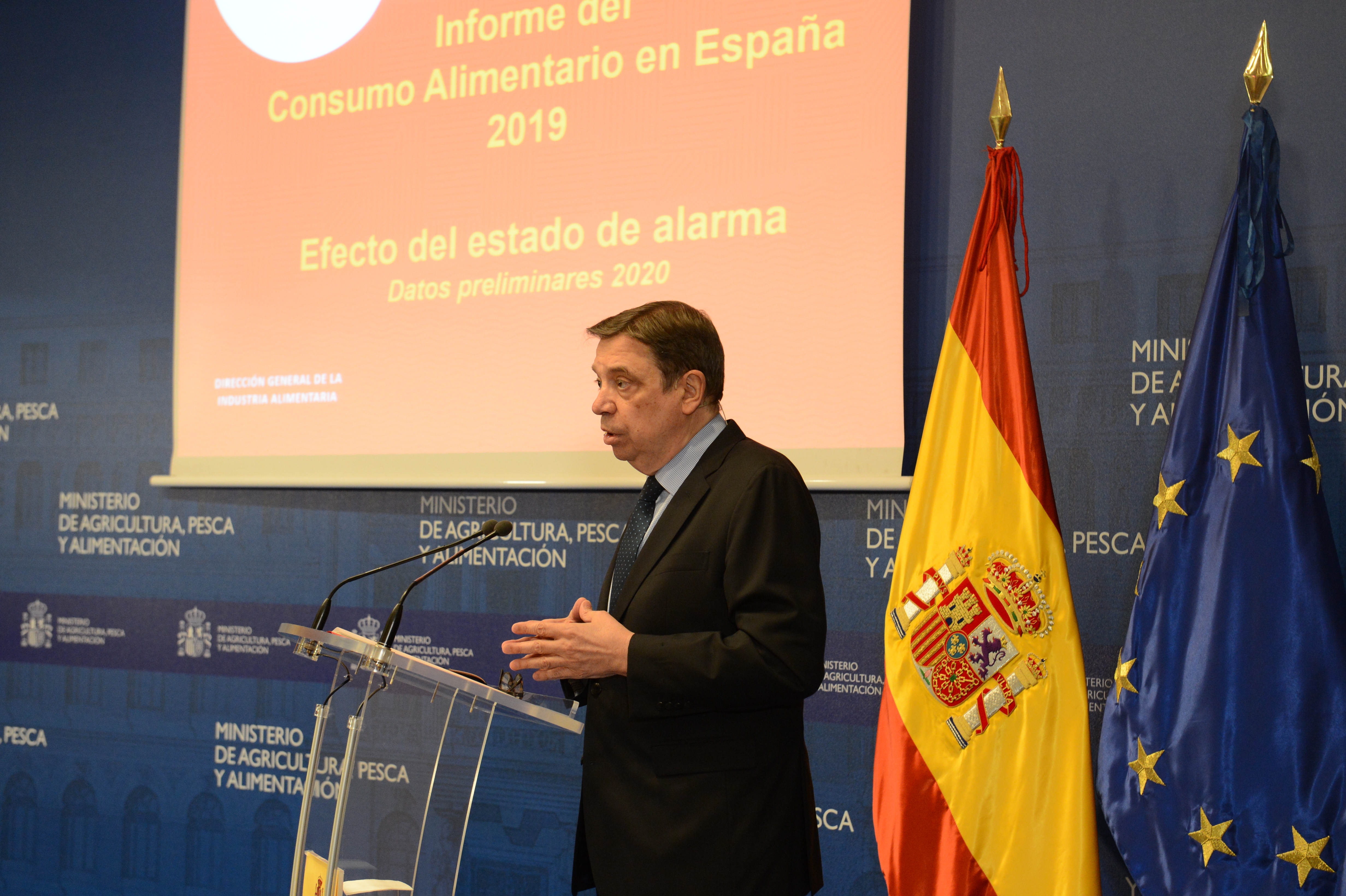 El ministro de Agricultura, Pesca y Alimentación, Luis Planas, ha presentado hoy los datos del Informe de Consumo Alimentario en España 2019, que desde hace ya 30 años permite disponer de una información anual completa sobre los alimentos y bebidas que se consumen dentro y fuera del hogar, y cuáles son los hábitos y tendencias de consumo de los españoles.