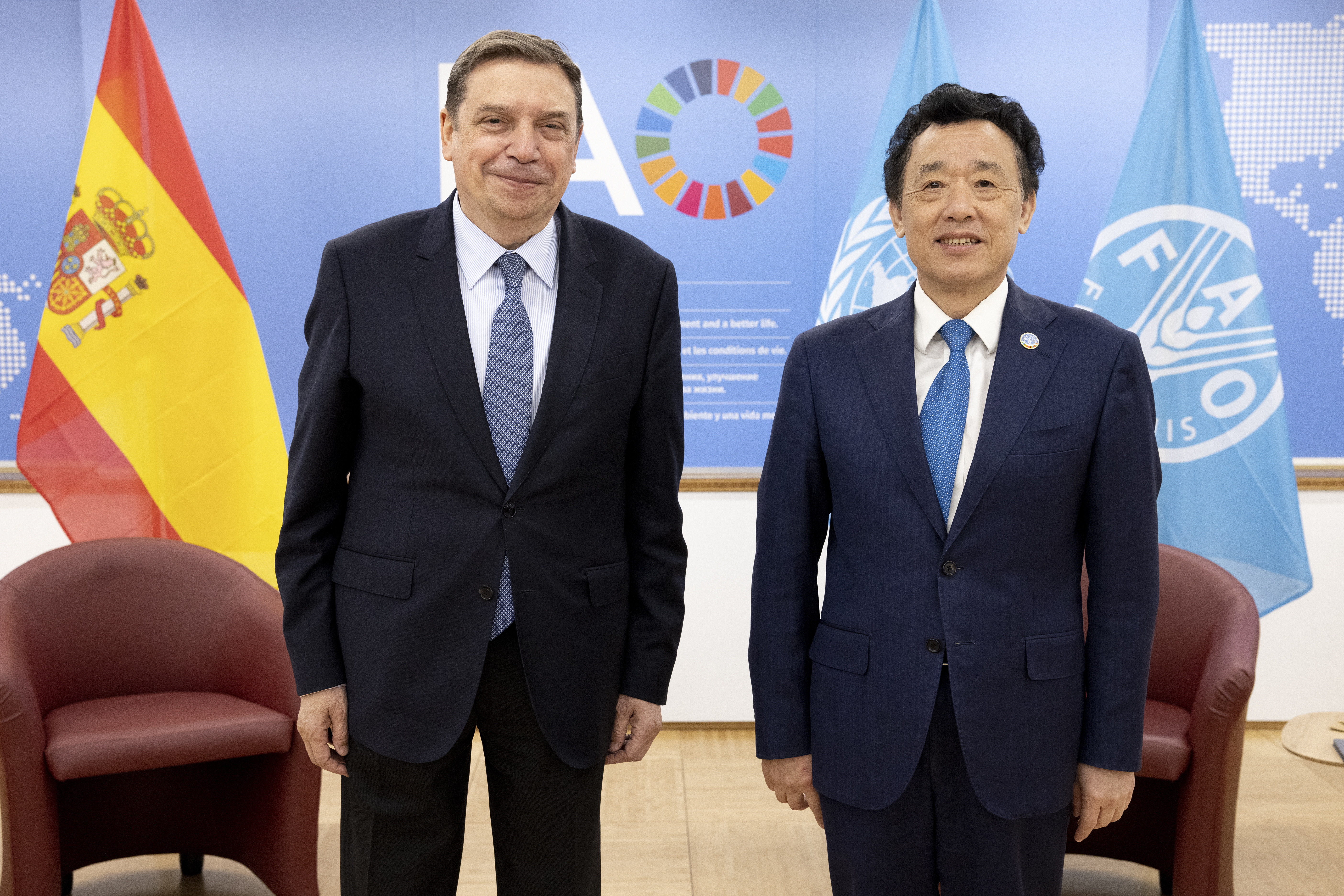 Luis Planas se ha reunido hoy, en Roma, con el director general de la Organización de las Naciones Unidas para la Alimentación y la Agricultura (FAO), Qu Dongyu, quienes han puesto de manifiesto su preocupación por los efectos que la guerra en Ucrania está teniendo sobre la seguridad alimentaria.